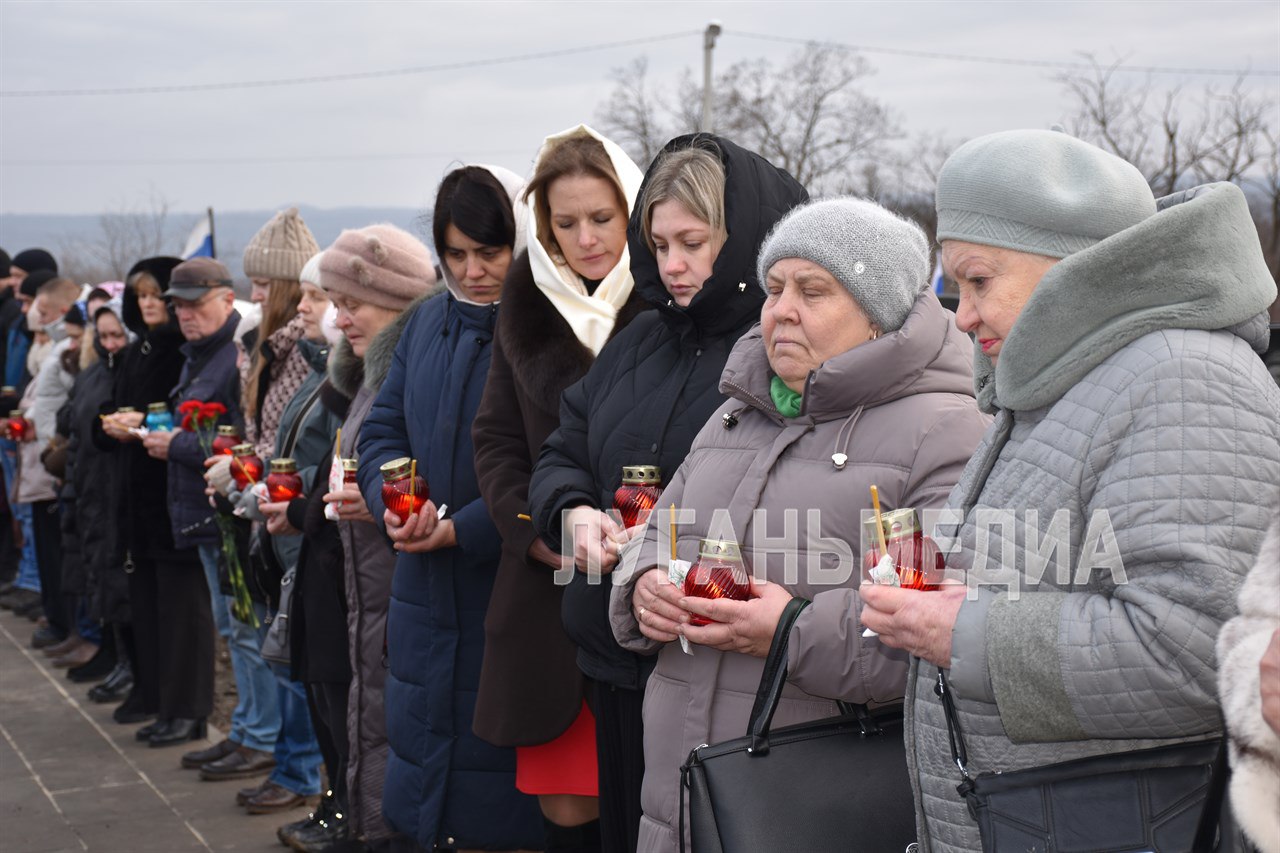 Благочинный Первомайского округа протоиерей отец Василий отслужил заупокойную литию по погибшим воинам. Память павших героев присутствующие почтили минутой молчания и возложили лампадки с зажженными свечами в часовне.