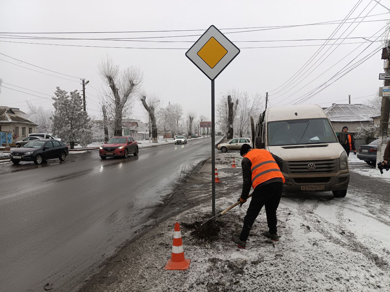 Сегодня, специалисты подрядной организации, в рамках заключенного контракта, проводят работы по установке новых дорожных знаков на улице К. Маркса.