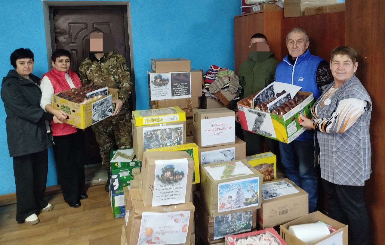 В Троицком муниципальном округе на передовую передали гумпомощь: предметы личной гигиены, тёплые вещи, средства освещения, походное оборудование, продукты питания, свежую выпечку, сладости, овощи и другие необходимые вещи. Особое внимание уделено обогреву бойцов: в посылках были и окопные свечи, приносящие не только тепло, но и душевное утешение в зимнее время. Все это собрали неравнодушные жители муниципалитета. Женщины старшего поколения своими руками связали тёплые прикроватные коврики, а дети подготовили новогодние открытки и написали душевные письма с поздравлениями.