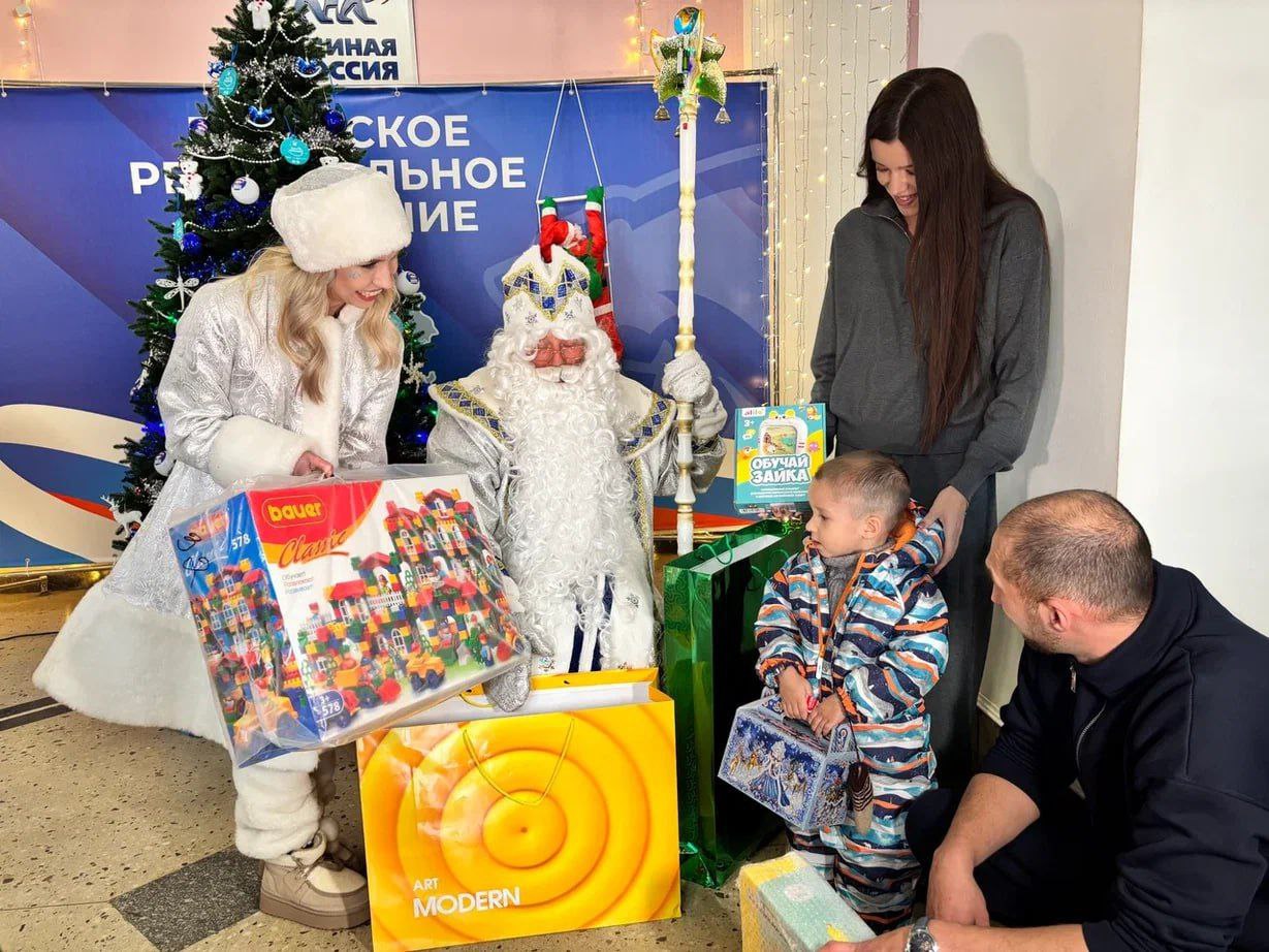 По моей просьбе, настоящий Дед Мороз, в лице депутата Народного Совета ЛНР Леонова В.В. вручил маленькому гостю подарки в Луганском региональном отделении партии «Единая Россия».