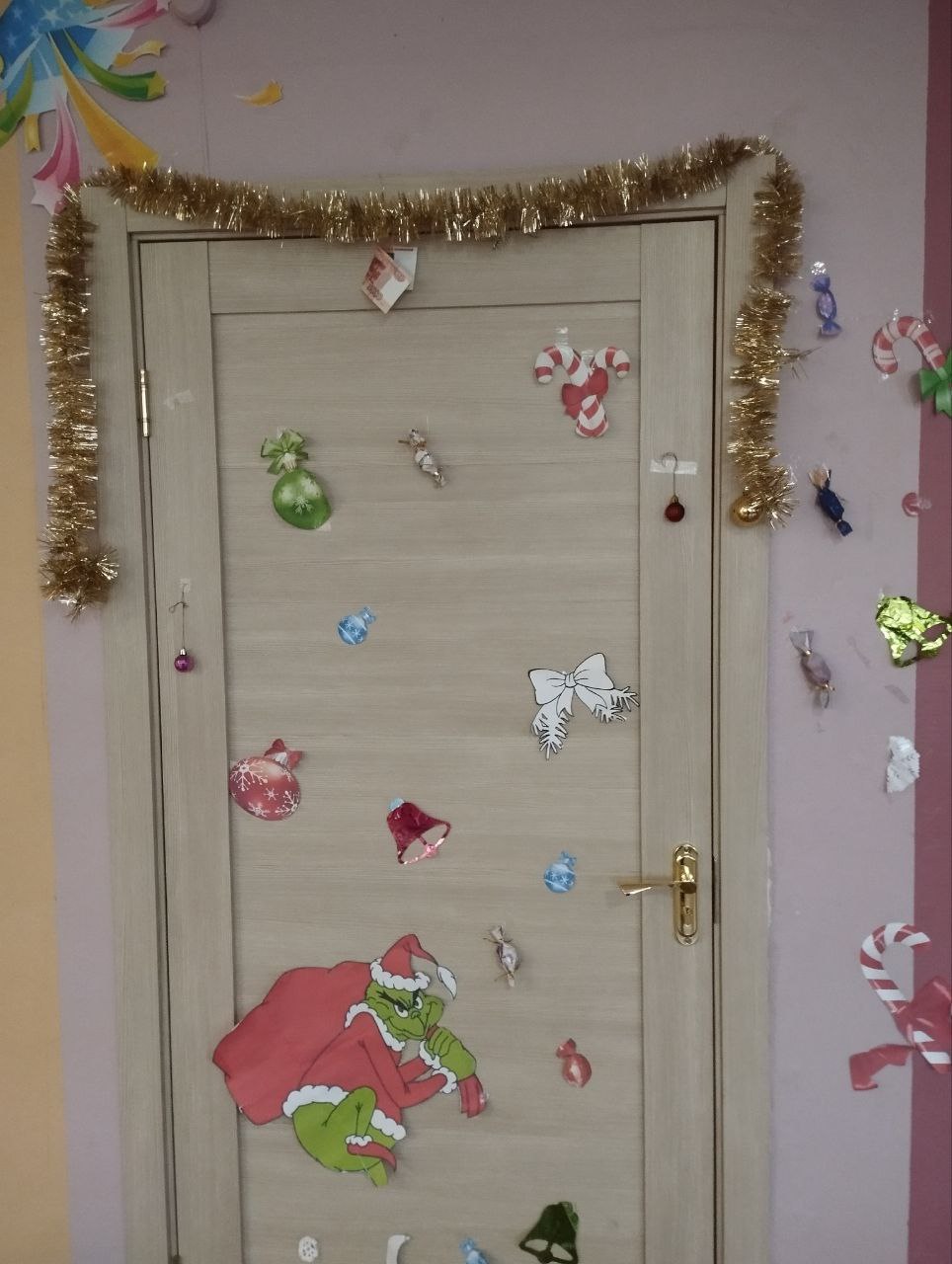Каждый класс получил задание проявить фантазию и создать уникальное украшение своей двери, отражающее дух Нового года. Учащиеся с энтузиазмом принялись за дело, используя разнообразные материалы: гирлянды, снежинки, игрушки, рисунки и многое другое.