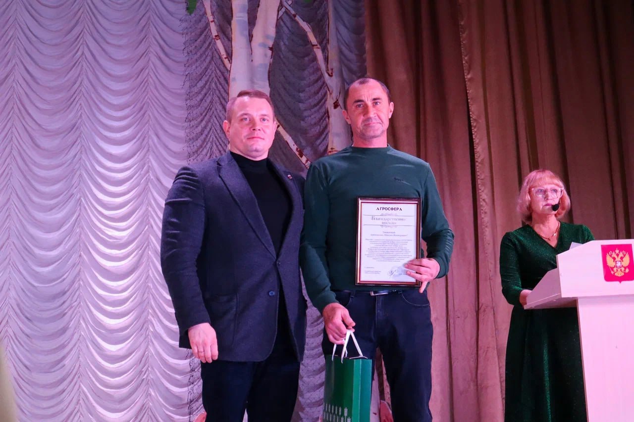 Генеральный директор ООО "Агросфера" Виктор Нагородний вручил благодарственные письма и подарки лучшим работникам Беловодского, Белокуракинского, Марковского и Новоайдарского отделений предприятия.