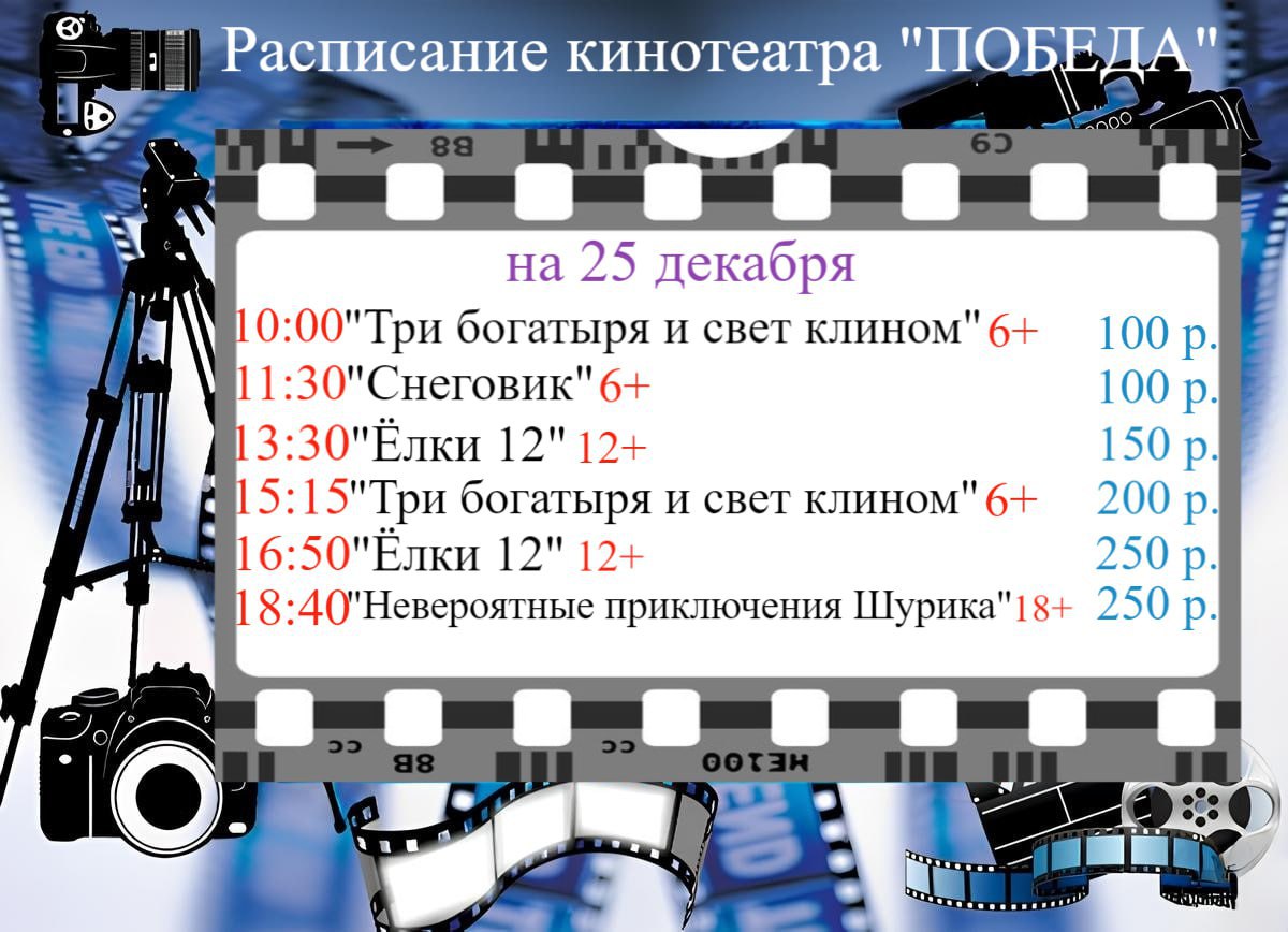 Расписание кинотеатра «ПОБЕДА» на 25 декабря