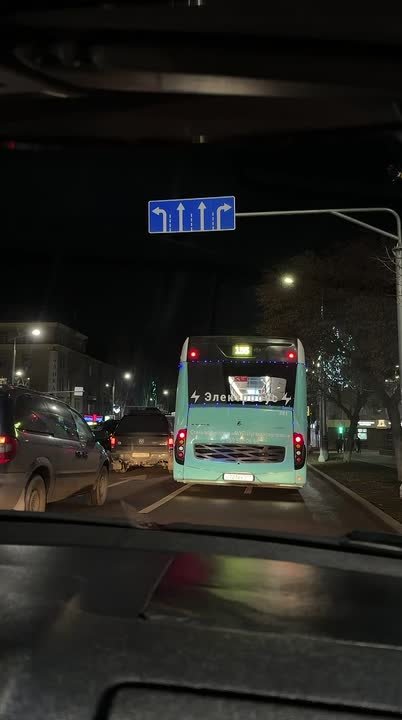 Вместо обычных наклеек, как в остальных автобусах компании, в электробусе по всем окнам растянута гирлянда Сморится красиво и очень по-новогоднему