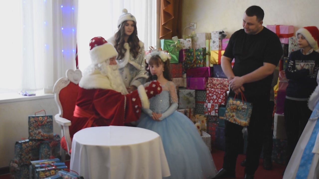 От имени Главы Старобельского муниципального округа Владимира Чернева с поздравлением к ребятам обратился заместитель Главы Максим Арабаджи. Он пожелал детям здоровья, радости, добра и веры в чудо, а также вместе с Дедом Морозом вручил каждому сладкий новогодний подарок.