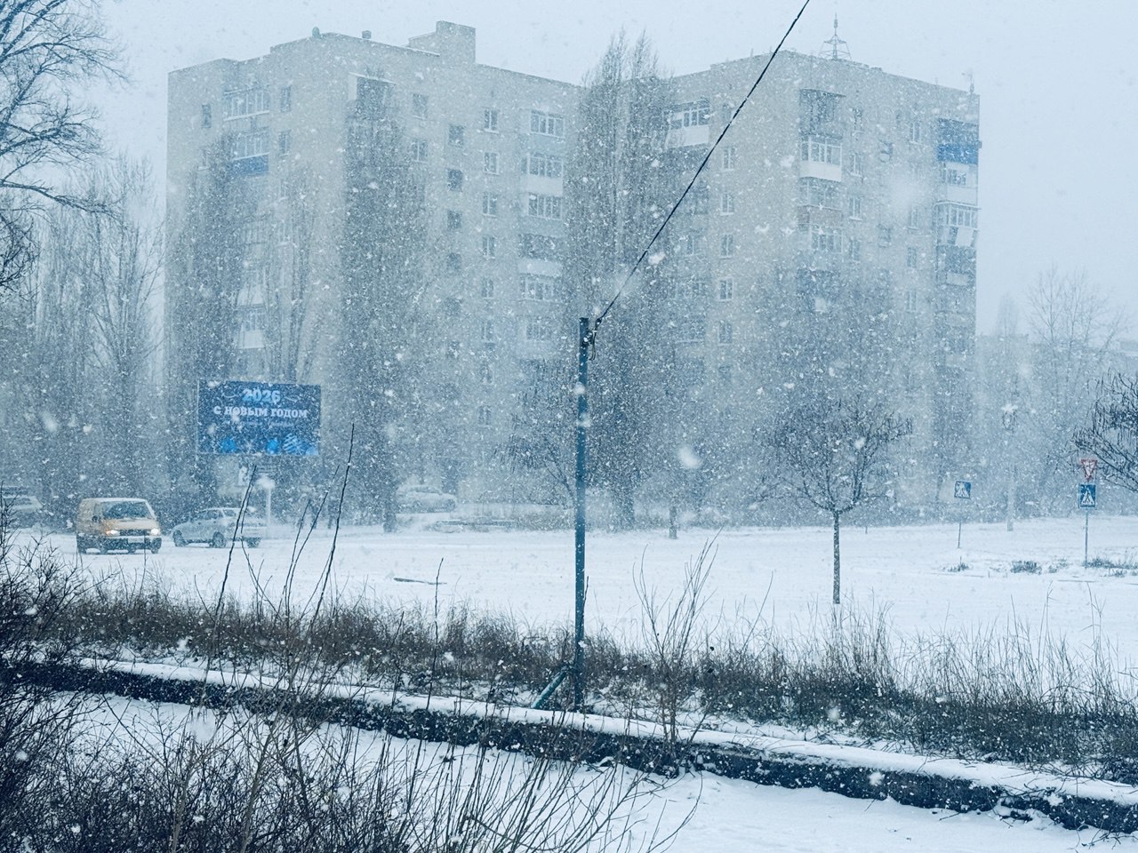 Сегодня, 26 декабря, в Рубежном идёт снег — пушистый, мягкий, такой понастоящему зимний! Это уже настоящее предновогоднее настроение: улицы укутаны белым покрывалом, а в воздухе витает волшебство. До праздника осталось совсем немного, и снег только добавляет ему атмосферы.