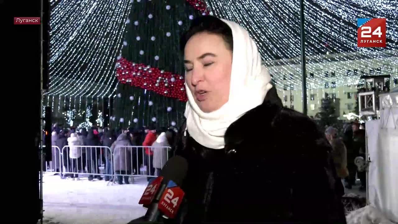 Отпраздновать её открытие собрались сотни луганчан. На Театральной площади столицы организована большая праздничная программа с выступлением творческих коллективов. А жителей Республики с наступающим Новым Годом поздравили Дед Мороз и Снегурочка.