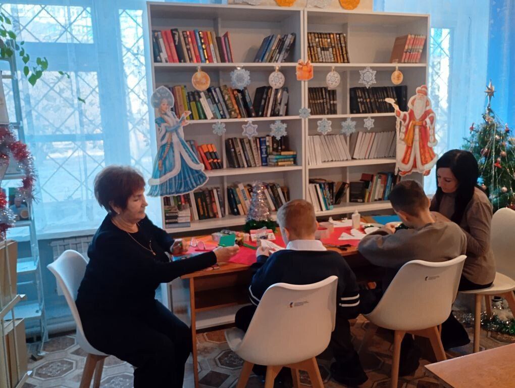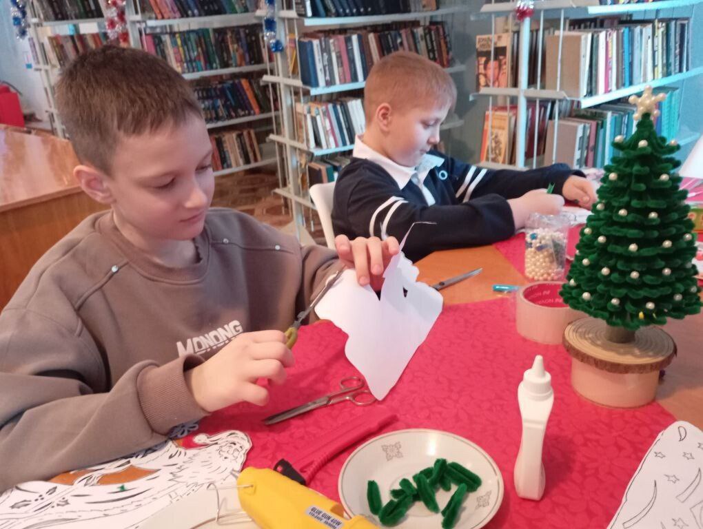 Своими руками дети изготавливали праздничные украшения, вырезая изящные снежинки и замысловатые вытынанки, чтобы преобразить окна библиотеки и привнести атмосферу волшебства и приближающегося Нового года!