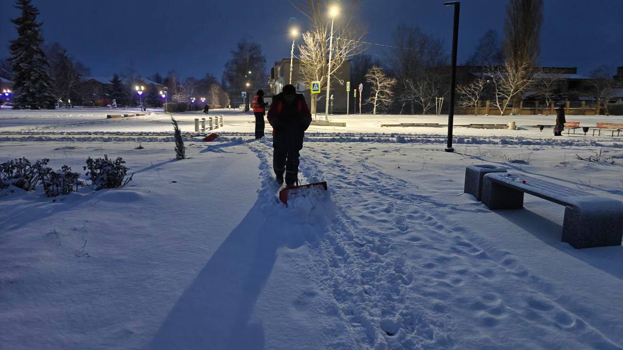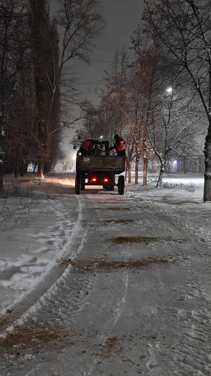Коммунальщики приводят в порядок дороги и пешеходные зоны, посыпают скользкие участки песчано-солевой смесью.