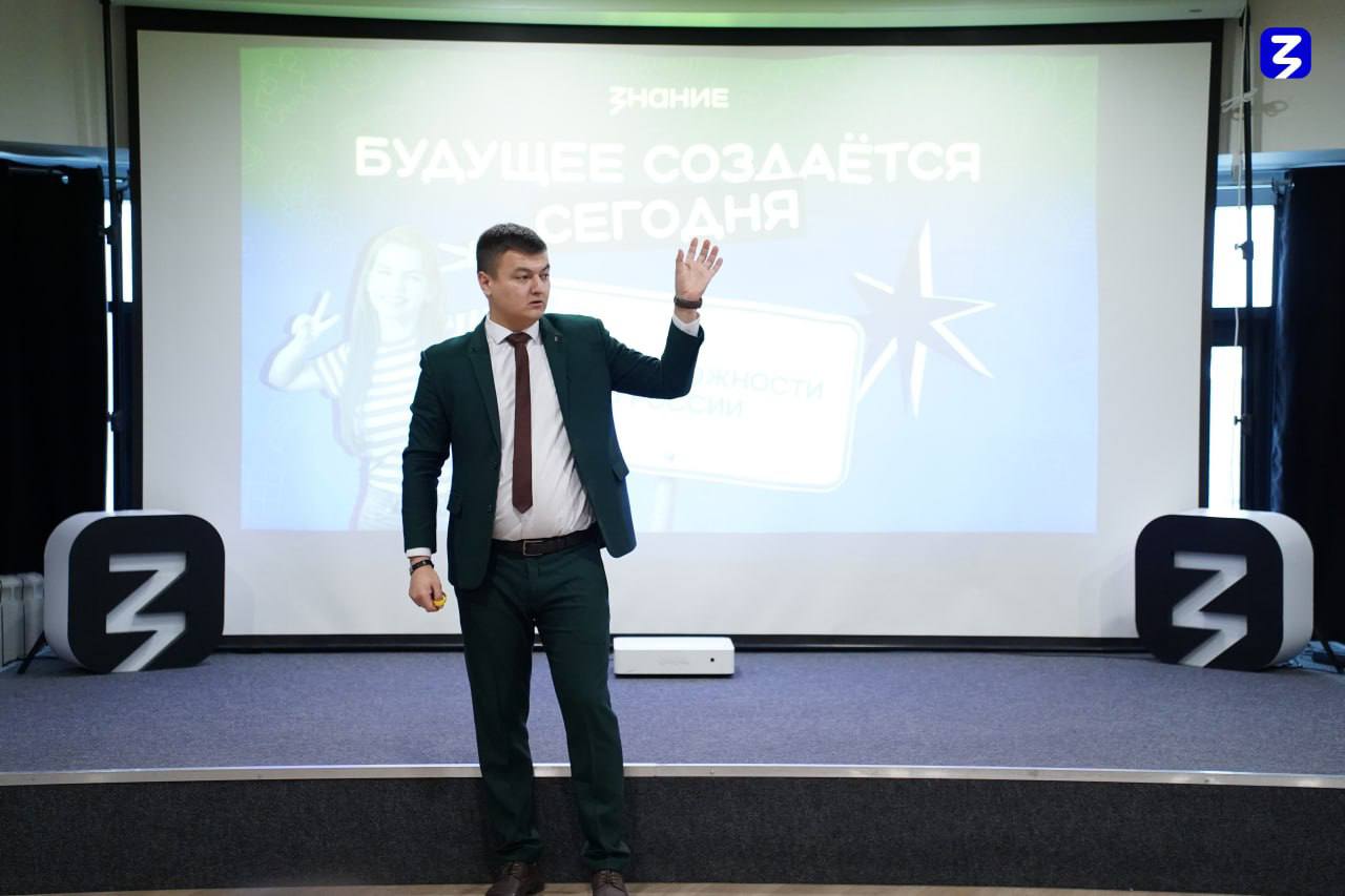 На одной из этих площадок провёл лекцию о возможностях поддержки семей через участие в конкурсах, а также о досуге детей и молодёжи через молодежные центры директор филиала Российского общества «Знание» в ЛНР Даниил Степанков.