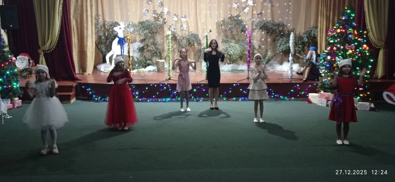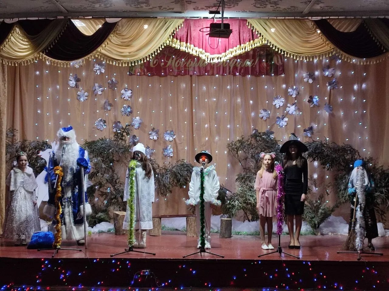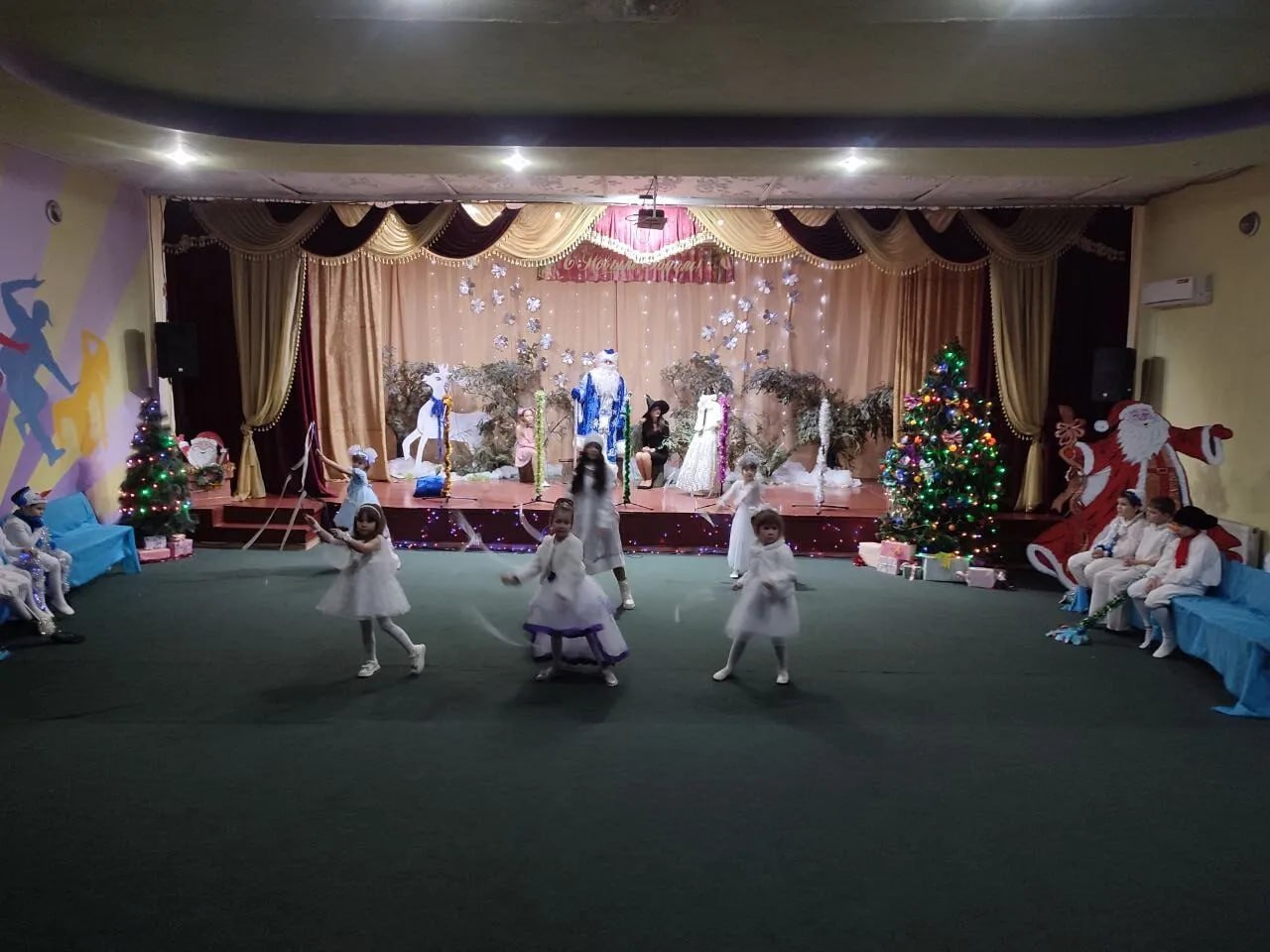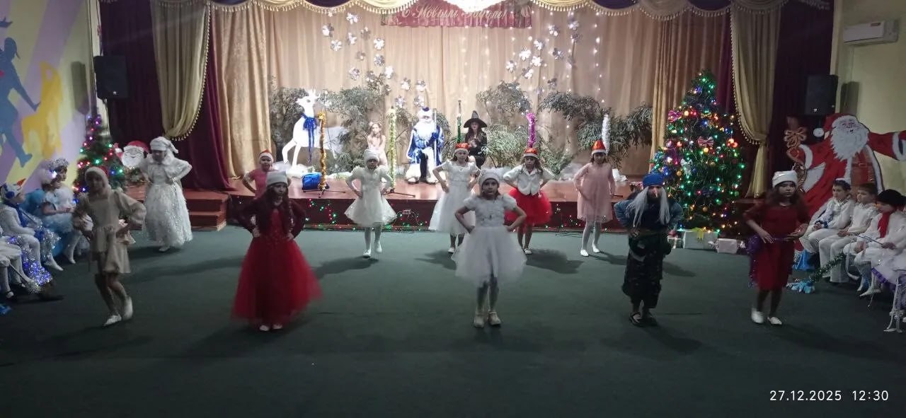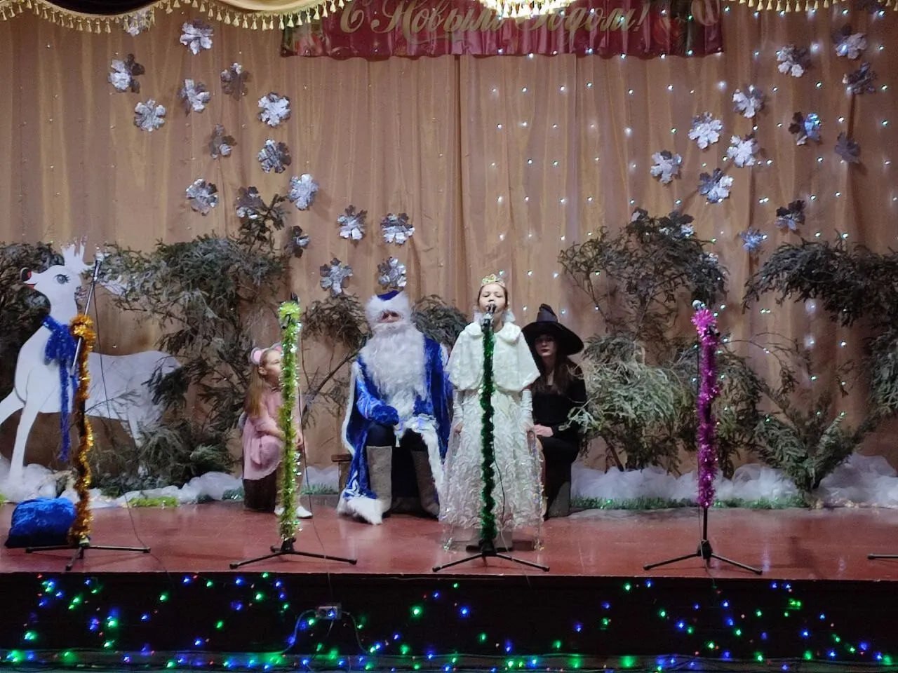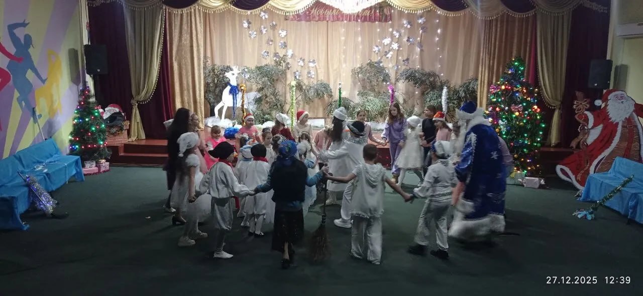 Ребята рассказывали стихотворения и водили хороводы. Разноцветные, сверкающие гирлянды и ярко украшенная ёлочка принесли детям и взрослым ощущение чуда, а сказочные герои увлекли детей в волшебный мир сказки. С появлением Деда Мороза и Снегурочки начался настоящий праздник.
