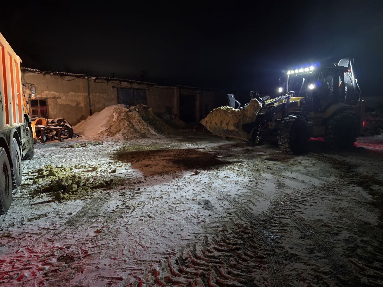 Сотрудники предприятия МУП "ЖЭК" города Ровеньки, с использованием 4 единиц специализированной техники, проводят посыпку автомобильных дорог пескосоляной смесью в пгт Дзержинский и пгт Кленовый. Они равномерно распределяют противогололедный материал, который предотвращает образование наледи и делает автомобильные дороги в поселках более безопасными.