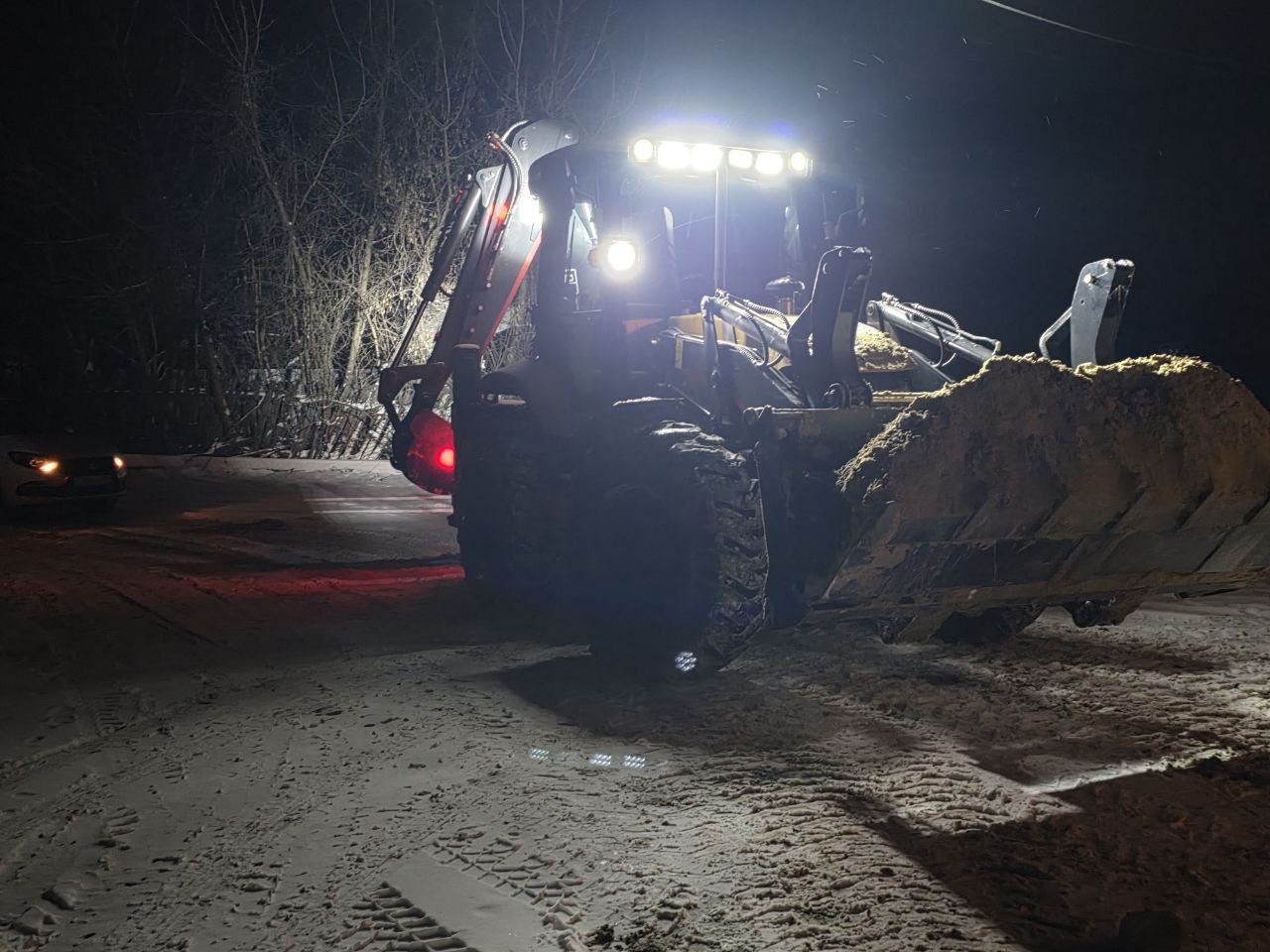 Продолжают работу и сотрудники предприятия МУП "СКАТ". Сегодня утром работники и техника предприятия приводят в соответствие автомобильные дороги центральный части городского округа.