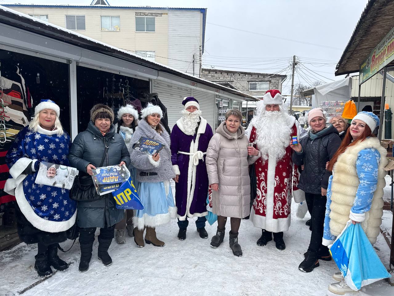 Именно такие Деды Морозы, вместе со своими Снегурочками поднимали настроение жителям города сегодня утром на центральном рынке города.