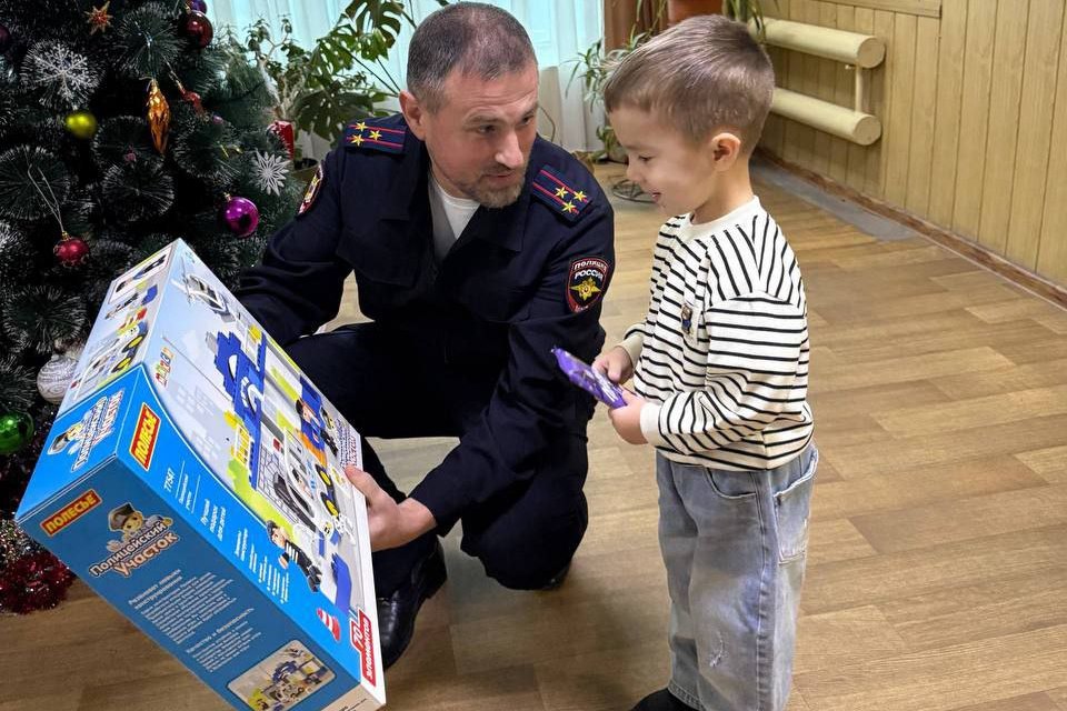 Заме. начальника отдела МВД России «Свердловский», полковник полиции Дмитрий Жильцов снял с Ёлки желаний шар с заветной мечтой 3-хлетнего Егора.