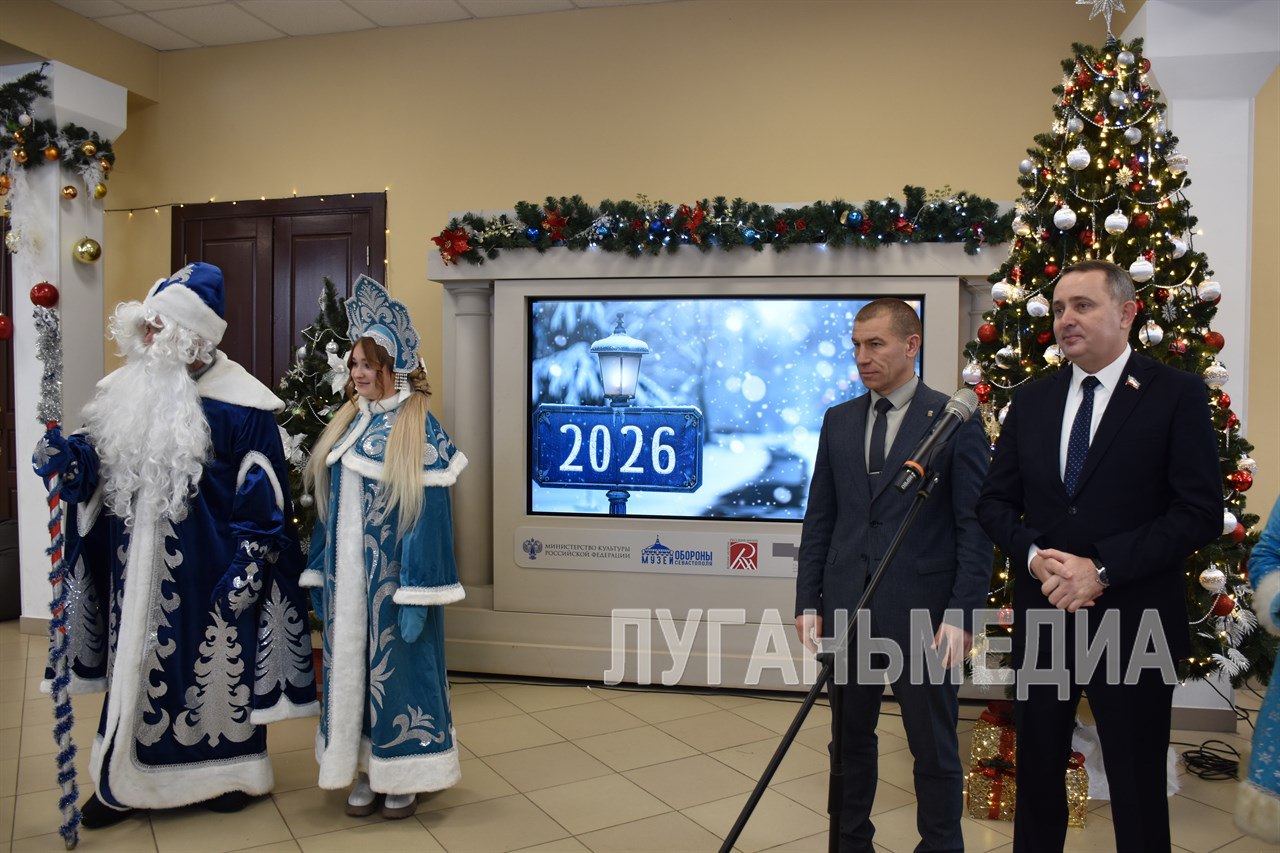 Депутат Народного Совета ЛНР Андрей Губарев вместе с секретарем Первомайского МО ВПП «Единая Россия» Сергеем Колягиным вручили подарки 28 детям погибших участников СВО.