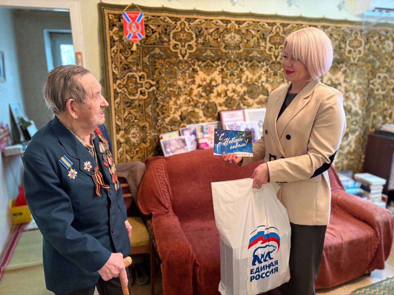 Партийный актив Единой России в Красном Луче поздравил ветеранов Великой Отечественной войны с наступающими праздниками
