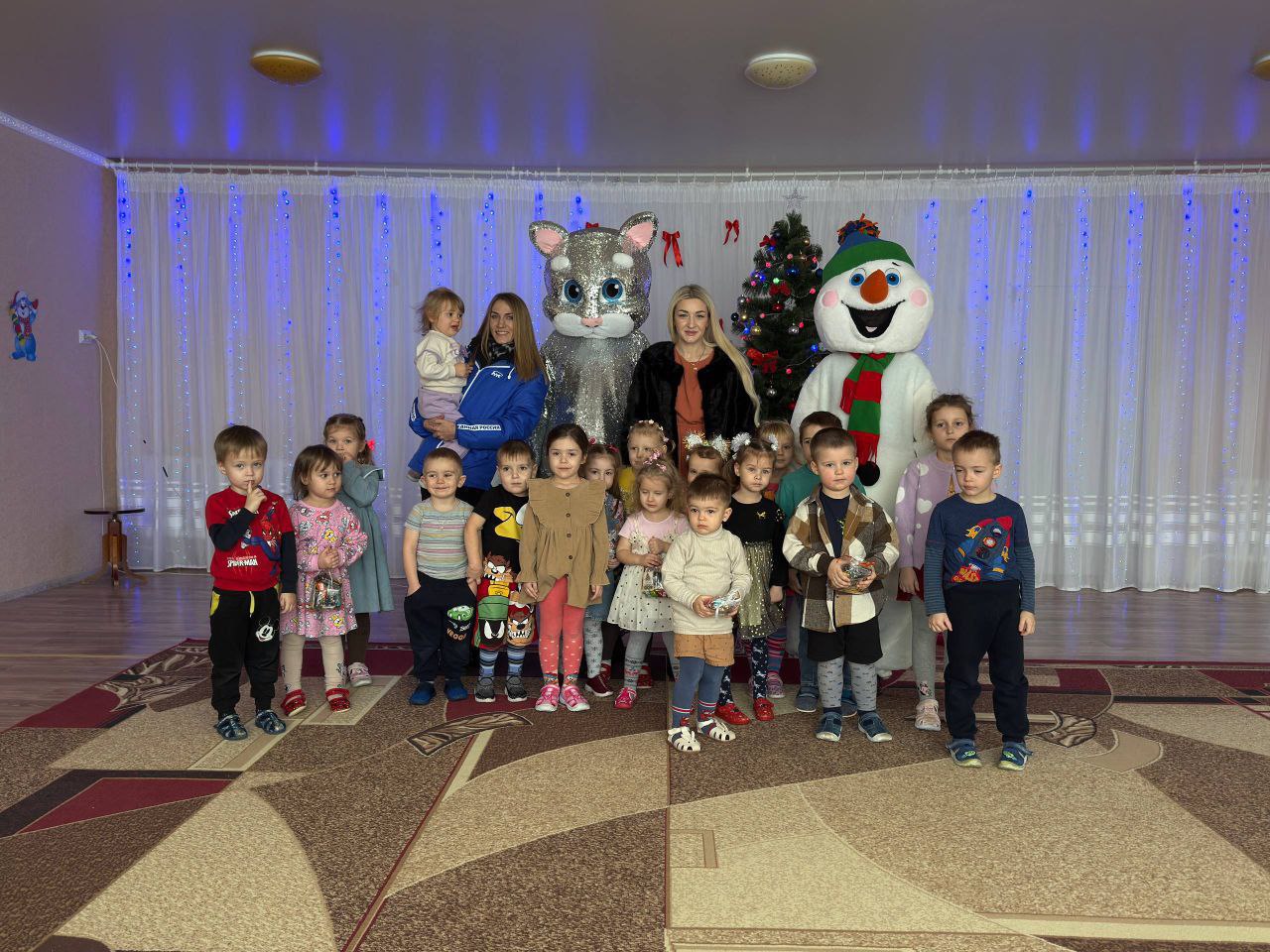 Ребятам были вручены сладкие подарки, переданные при содейтвии Алексея Словьева и прихожан храма Святой Ксении Петербургской на Филатовом Лугу. Кроме того, сотрудники детских садов получили канцелярские наборы, которые пригодятся работе с детками.