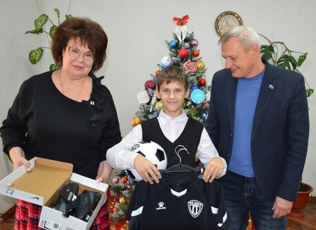 Денис из села Новоахтырка, большой поклонник футбола, давно мечтал о подарке, связанном с его любимым видом спорта. Его желание с готовностью поддержал Юрий Малыгин, советник Главы ЛНР по спорту и глава Республиканского Луганского Футбольного Союза. Мы вручили юному спортсмену фирменную форму легендарной луганской команды "Заря", новенькие бутсы и, конечно же, футбольный мяч, чтобы тренировки стали еще более увлекательными и доступными.