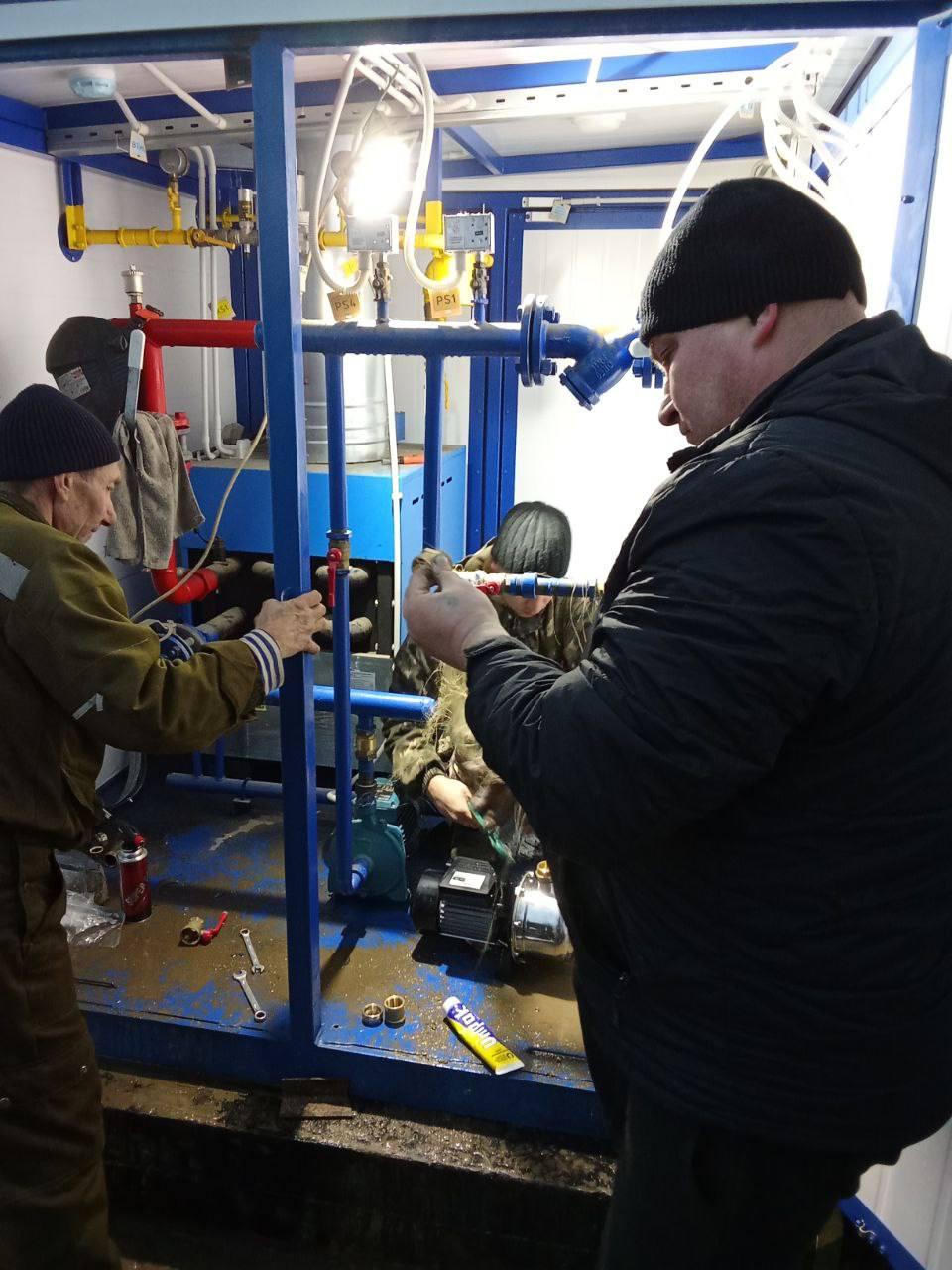 Также аварийщики выполнили ремонт блочно-модульной котельной с заменой насосов, запорной арматуры, соединений, прокладок, фильтров и клапанов. Проведена ревизия инженерных сетей с составлением ведомости объёмов работ.