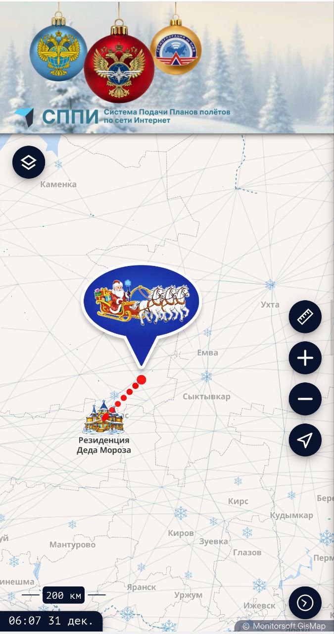 Прямо сейчас Дед Мороз движется из своей резиденции на Камчатку