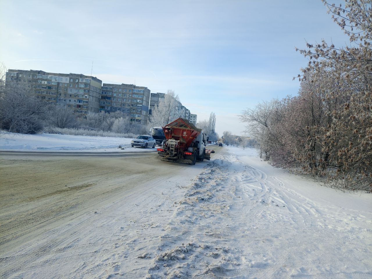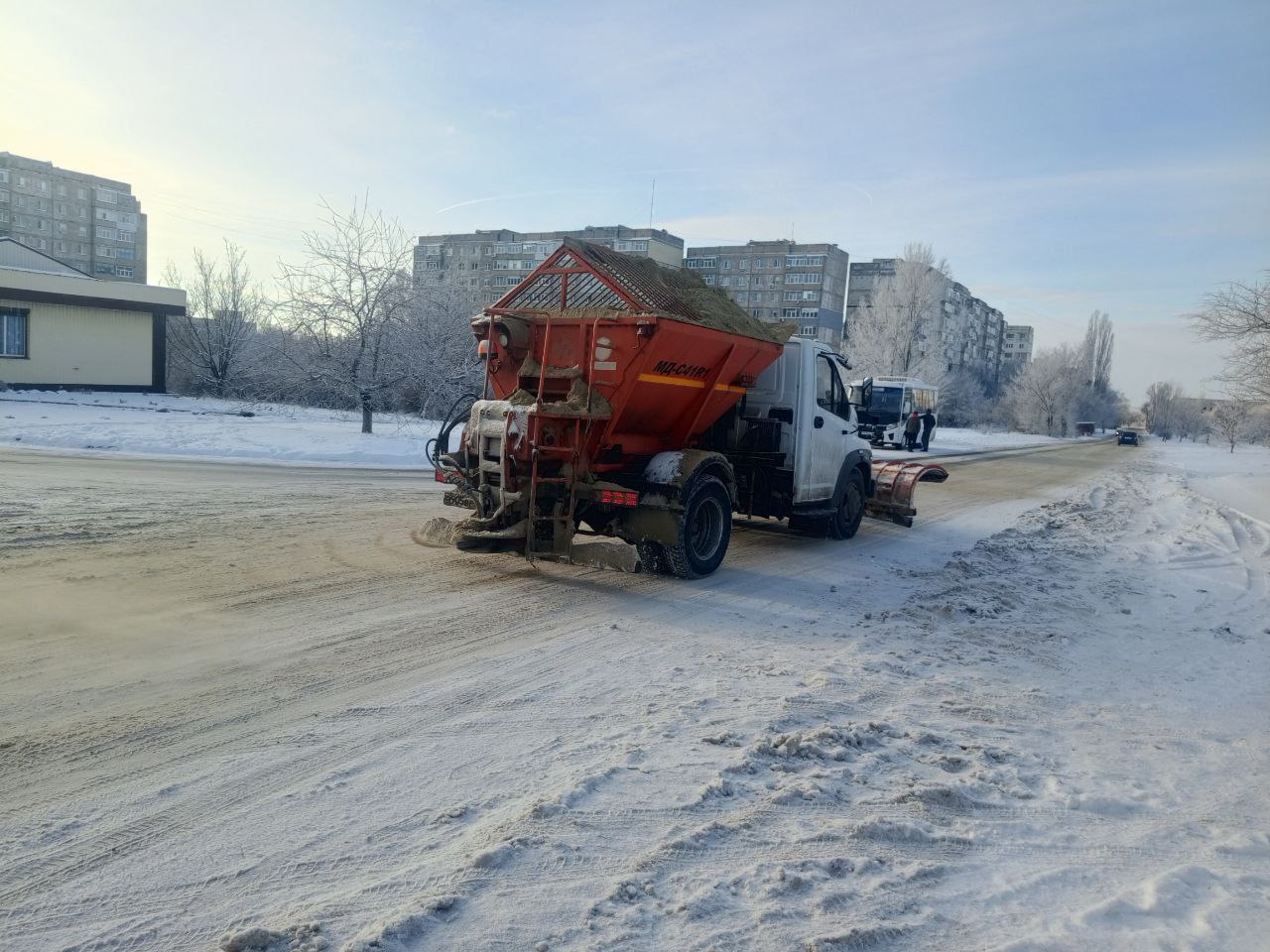 МУП "СКАТ" по благоустройству городского округа город Ровеньки продолжает плановую работу по содержанию городских автомобильных дорог в зимний период.