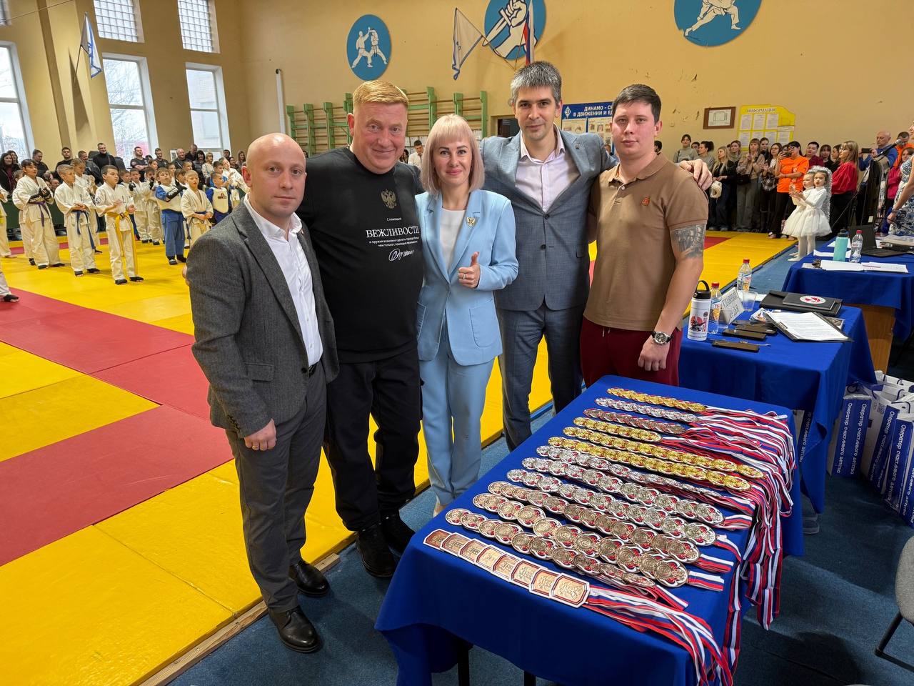 Депутат Народного Совета ЛНР, первый заместитель Секретаря Луганского регионального отделения партии «Единая Россия» Василий Леонов; Министр спорта ЛНР Олег Шеренешев; Руководитель РООФСОО «ФЕДЕРАЦИЯ КУДО РОССИИ» В ДНР Иван Хильченко.
