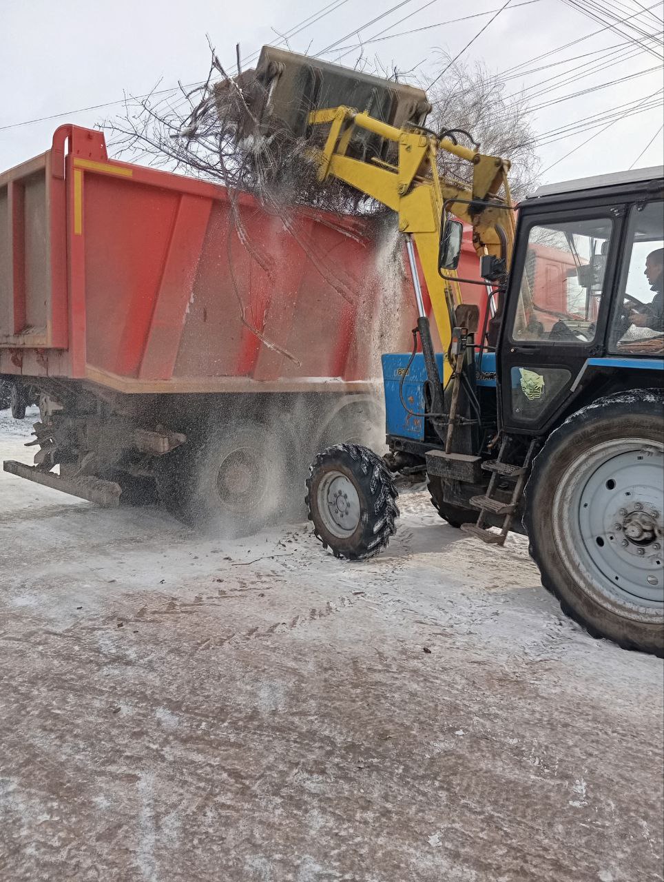 Работники МБУ Центр "Благоустройство", в новогодние праздничные дни, выполняют мероприятия по вывозу твердых коммунальных отходов и благоустройству округа.