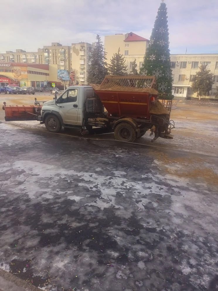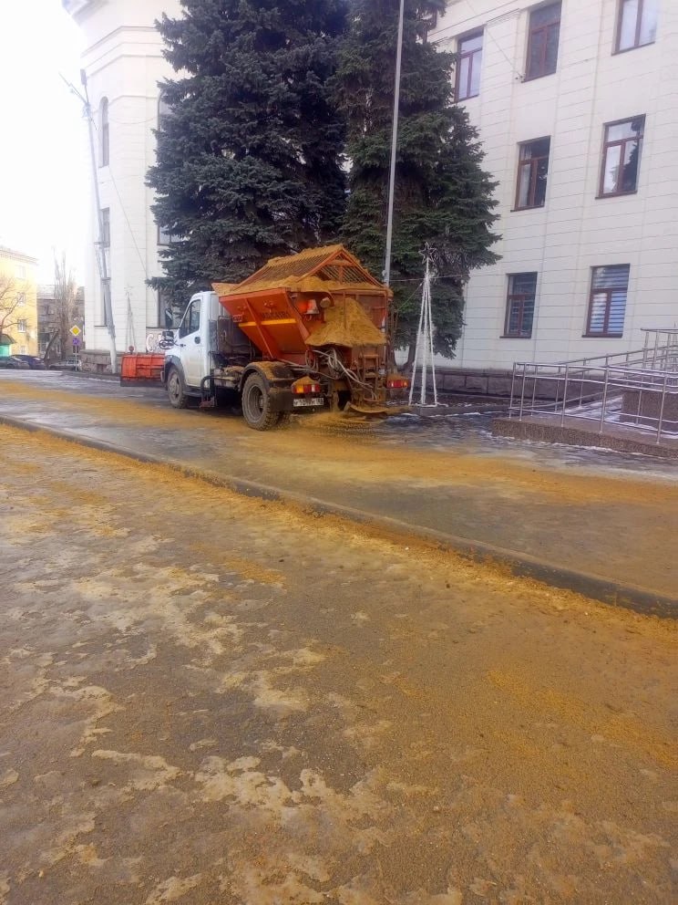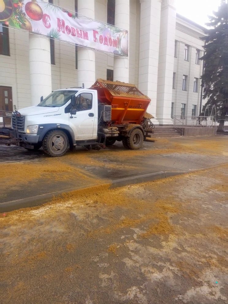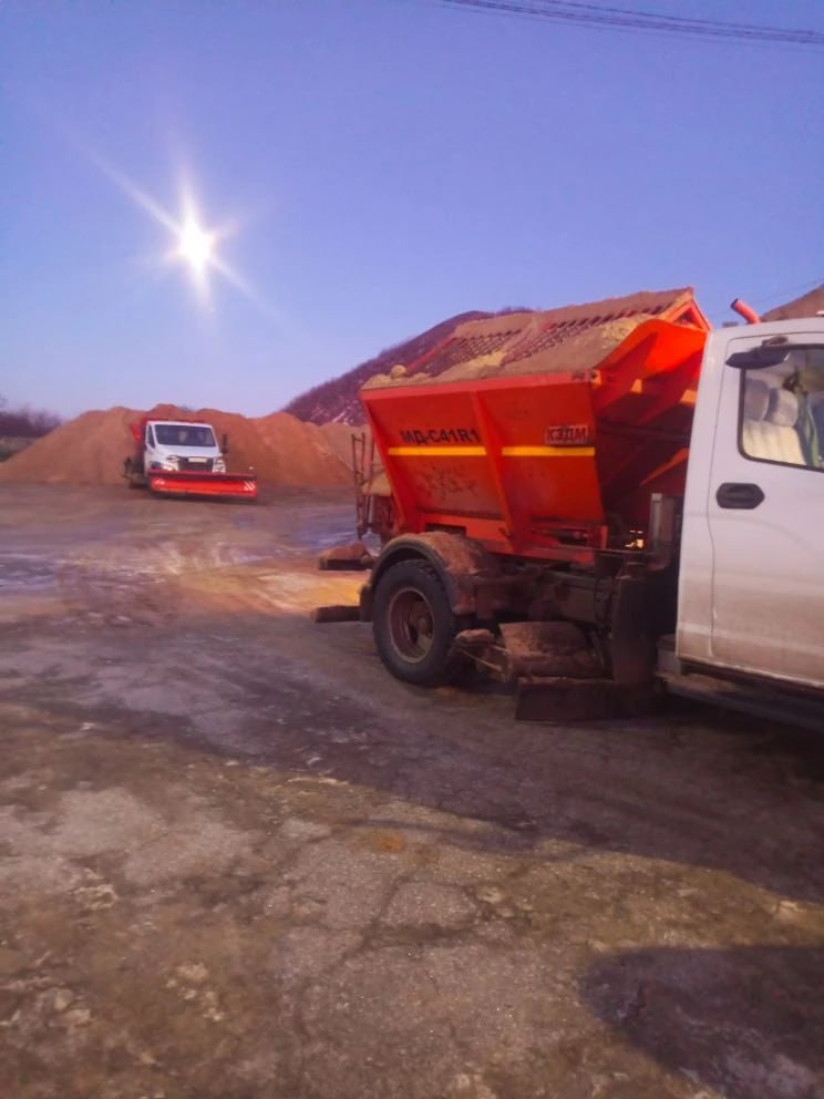 Сегодня техника и бригады работают там, где риск гололеда особенно высок: на центральных улицах и оживленных развязках, на подъездах к учреждениям, возле остановок. Песко-соляная смесь помогает «снять» скользкость и снизить вероятность заносов и ДТП.