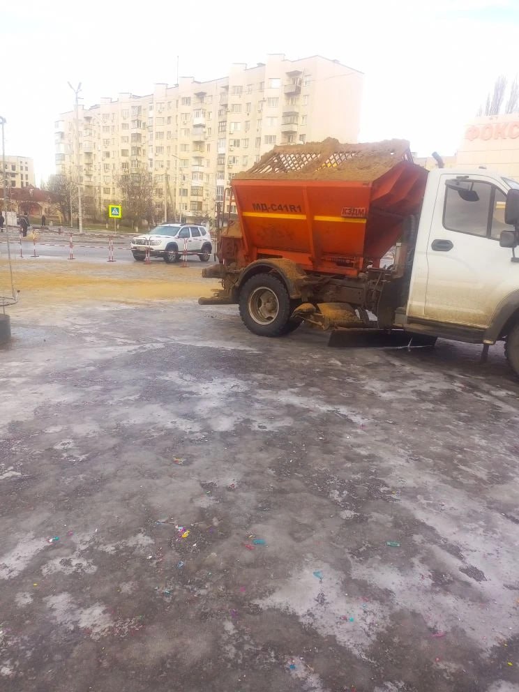 Работы по посыпке и обеспечению безопасного движения продолжаются.