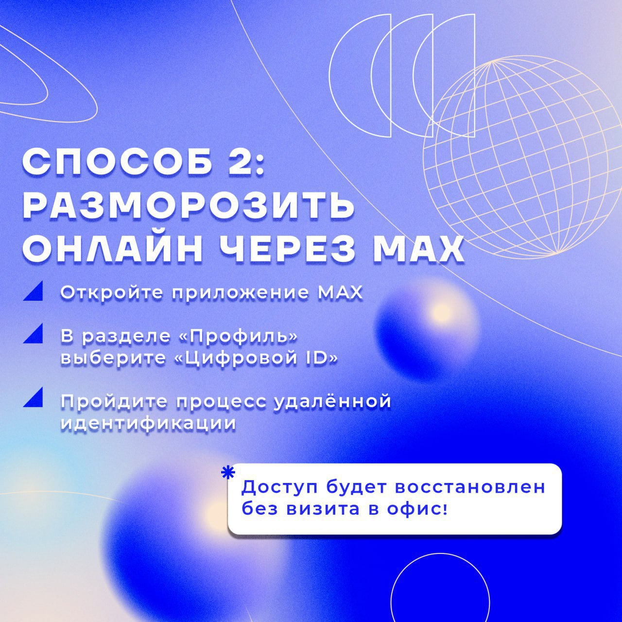 Есть два законных способа разморозить — лично в МФЦ и онлайн через MAX