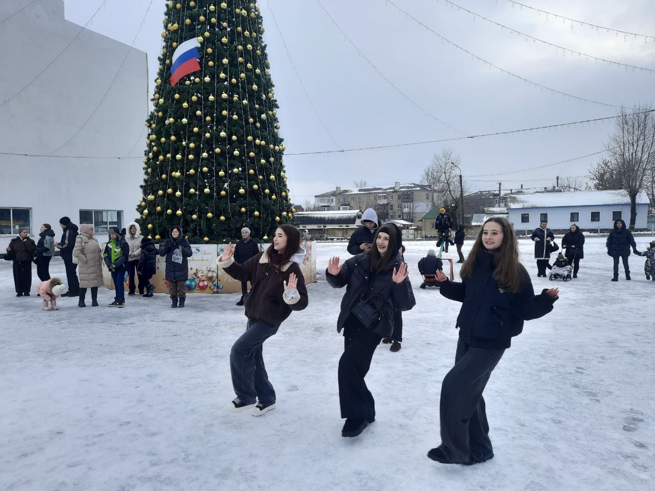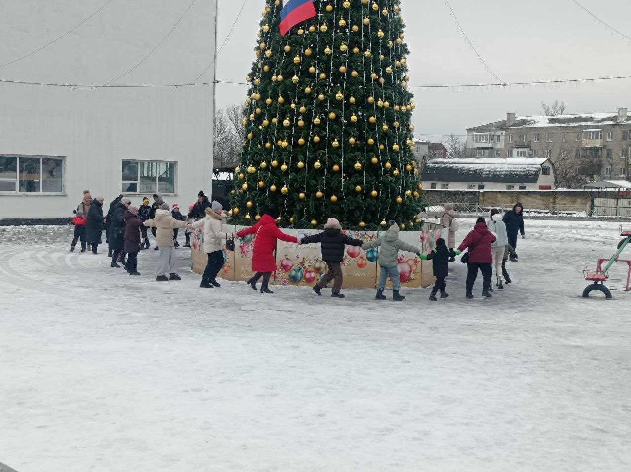 Зрители активно участвовали в традиционных русских забавах, весело водили хоровод вокруг нарядной елки и с удовольствием подпевали знакомым песням.