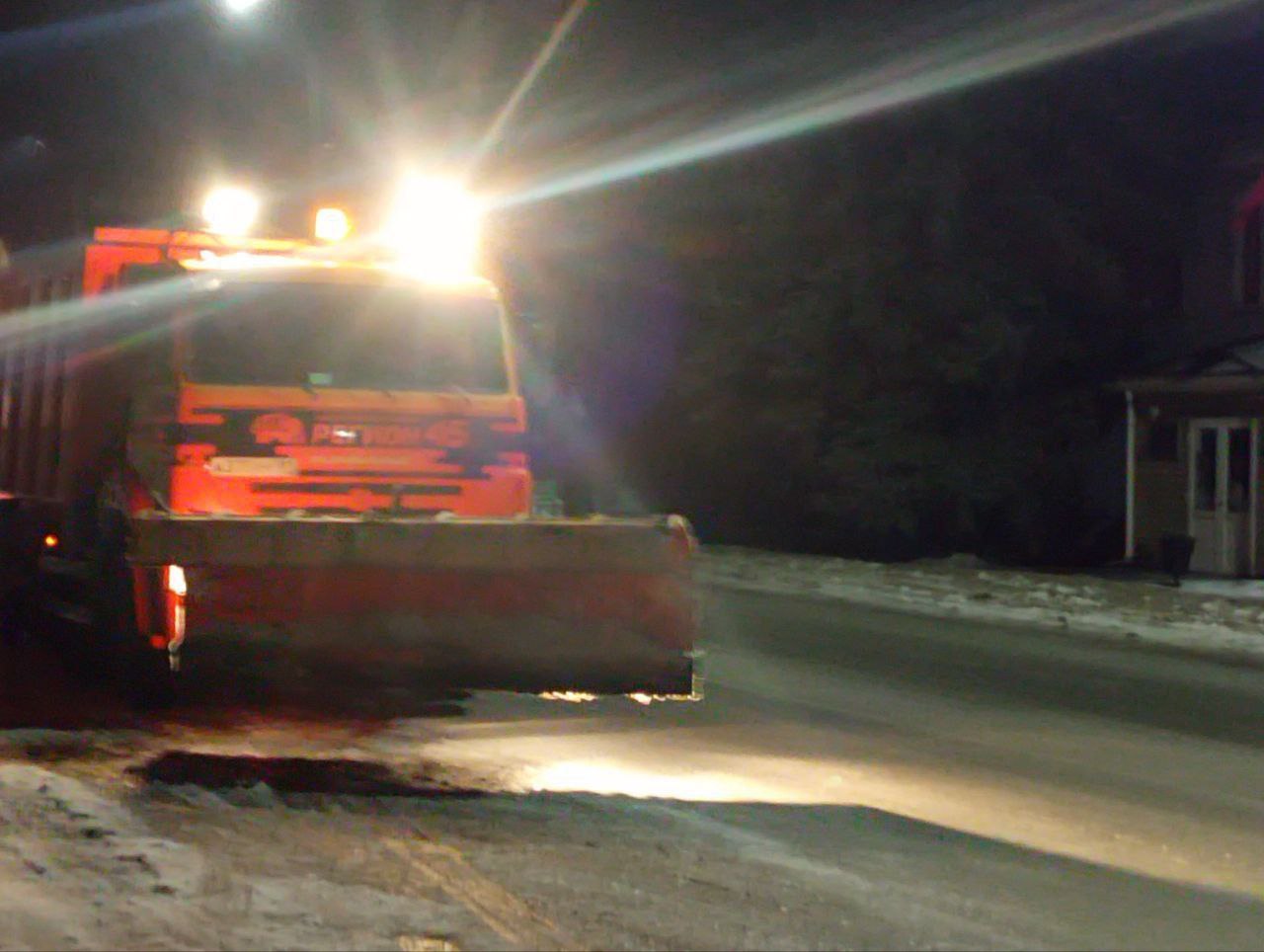 Поэтому специалисты МУП "СКАТ" выполняют работу по обработке автомобильных дорог пескосоляной смесью.