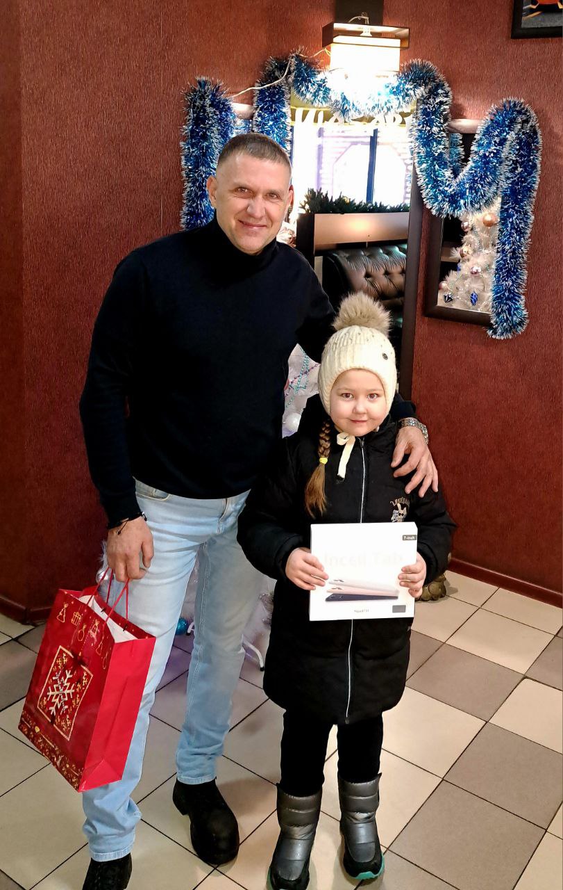 К акции присоединился индивидуальный предприниматель Копейко Николай Александрович и исполнил мечту юной жительницы округа — Полины. Полина очень активная девочка, всегда в движении, с удовольствием играет в игры и давно мечтала о планшете. И вот ее желание стало реальностью — Полина получила долгожданный подарок.