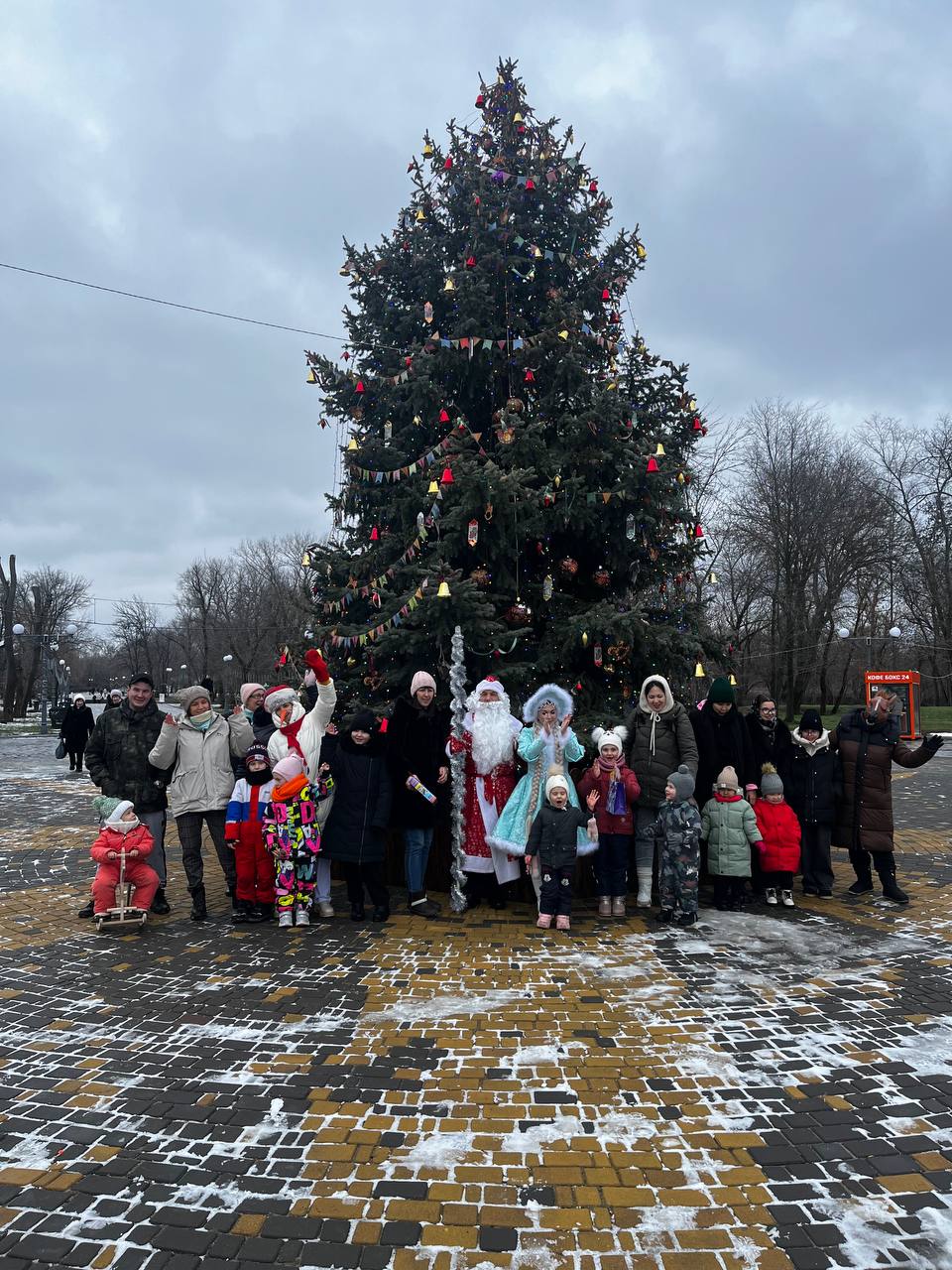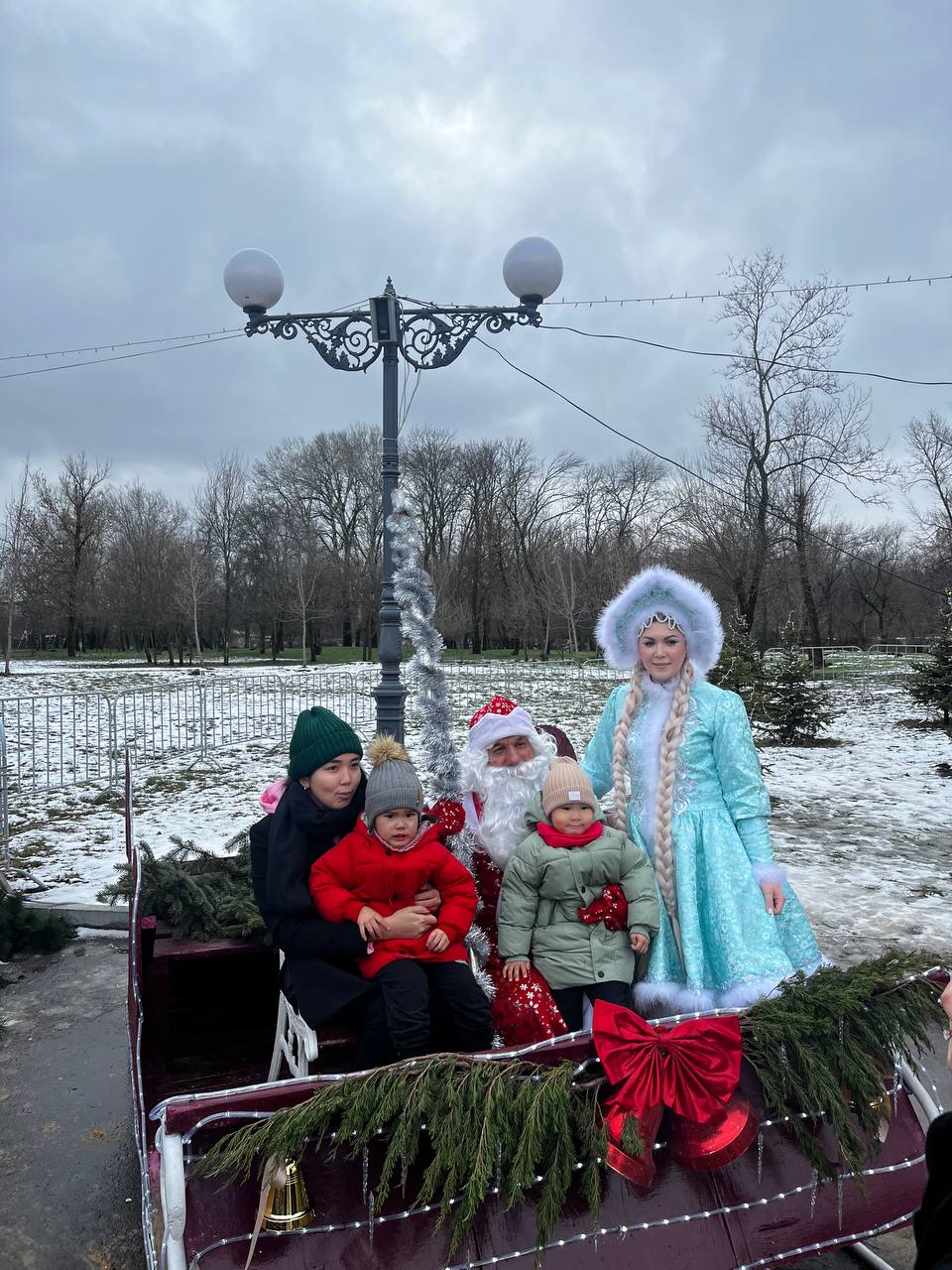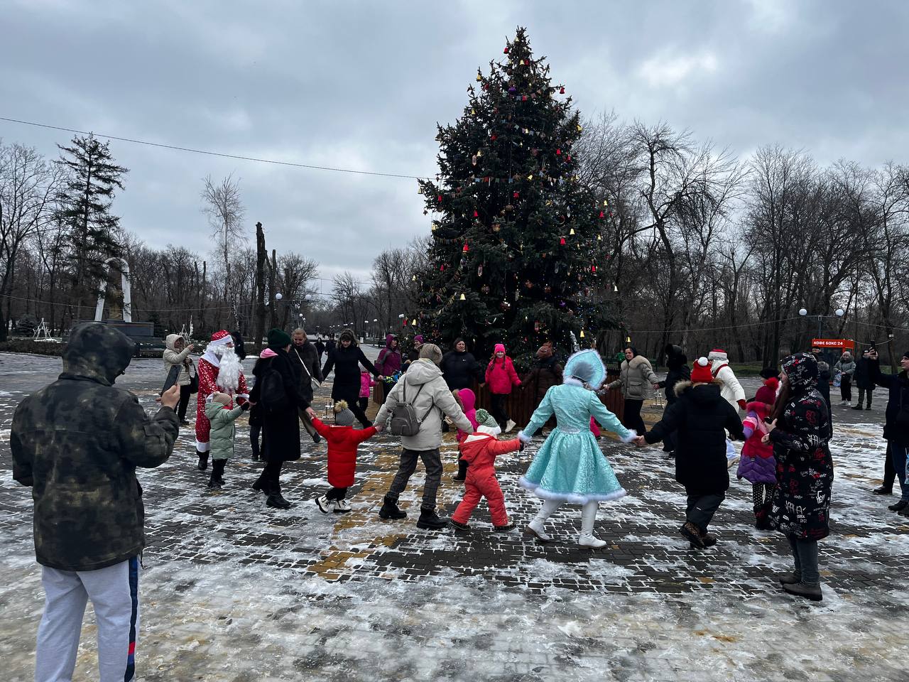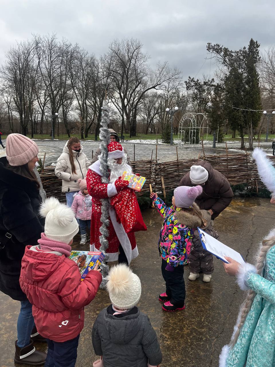 В этот раз мероприятия возле Домика Деда Мороза для юных посетителей парка проводили артисты Дома культуры поселка Красный Яр. Ребята с удовольствием водили хороводы возле ёлки и играли с Дедом Морозом и Снегурочкой.