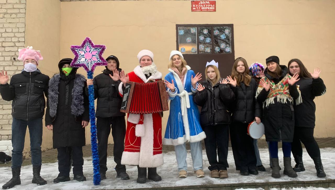 Соблюдая многолетние традиции, ДК им. Т. Г. Шевченко пгт Большекаменка ежегодно радушно встречает у себя гостей-колядовальщиков, одаривая их сладостями.
