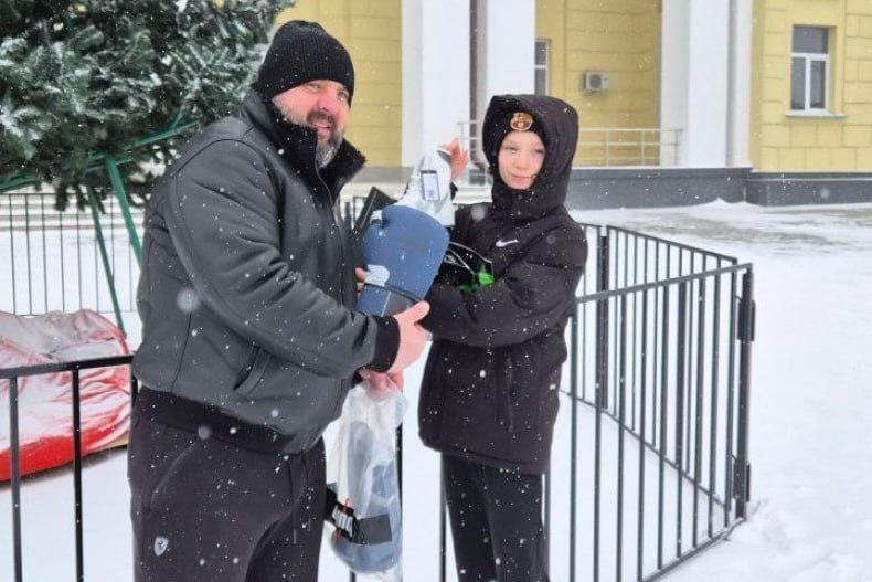 Индивидуальный предприниматель, владелец строительного магазина «Добродом» Виктор Добронравов исполнил желание Тимура. Мальчик любит спорт и загадал получить обувь и перчатки для бокса.