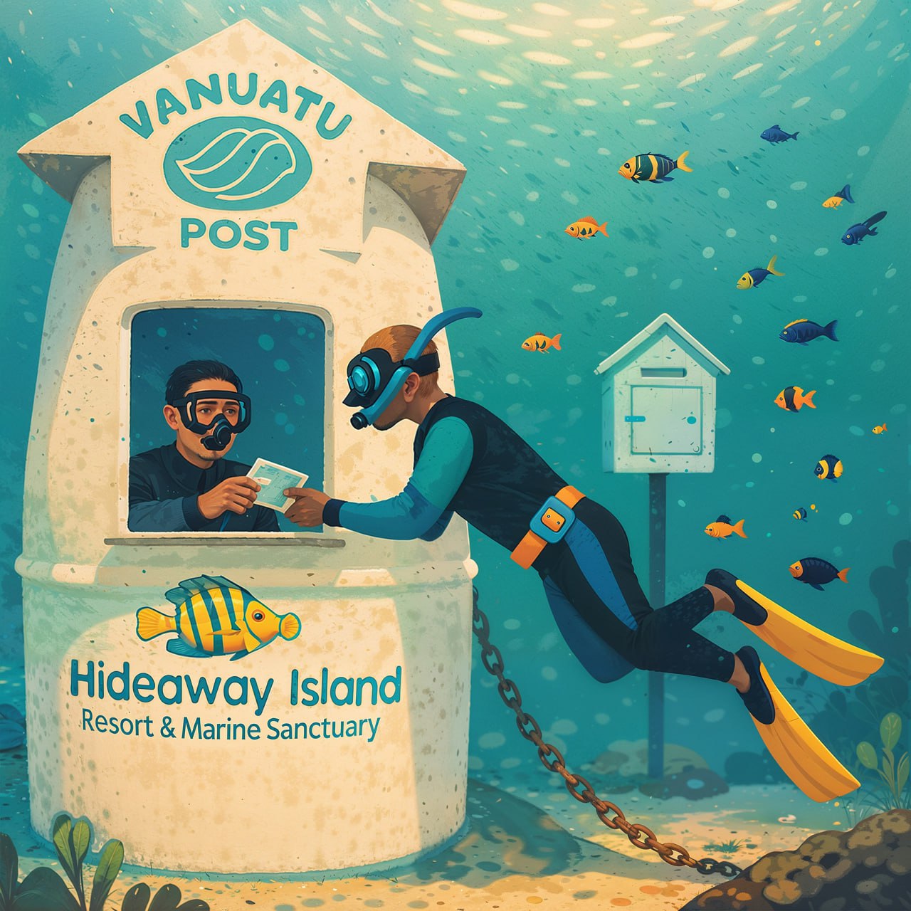 На острове Хидеуэй в Вануату находится единственное в мире официальное подводное почтовое отделение. Оно расположено прямо в лагуне, в кристально чистой воде, и работает как обычная почта — только здесь отправители ныряют с маской и ластами.