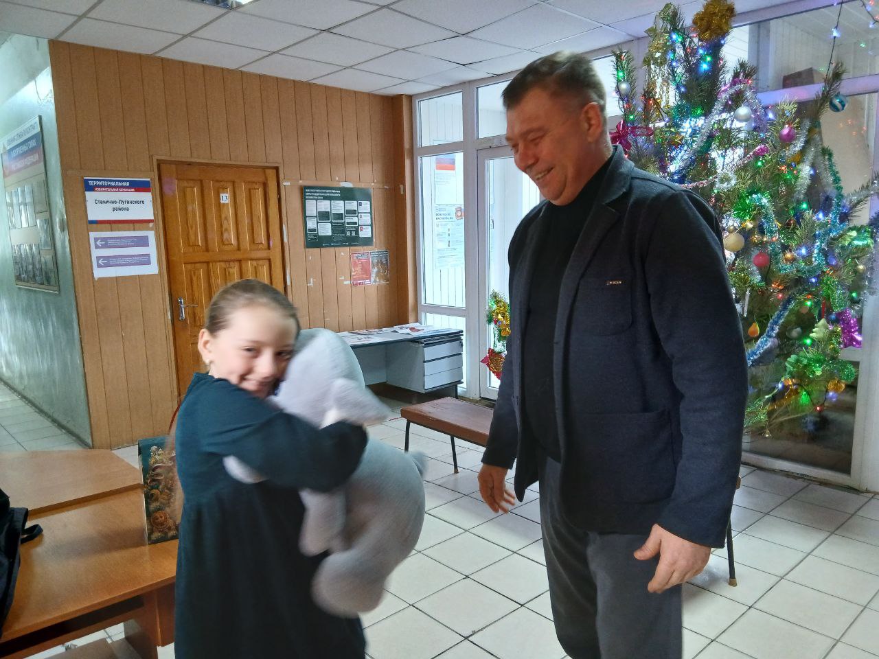 Заместитель Главы Станично-Луганского МО, Герой ЛНР, Андрей Донцов с большой радостью исполнил желание Маши, шар с которым он снял с "Ёлки желаний".