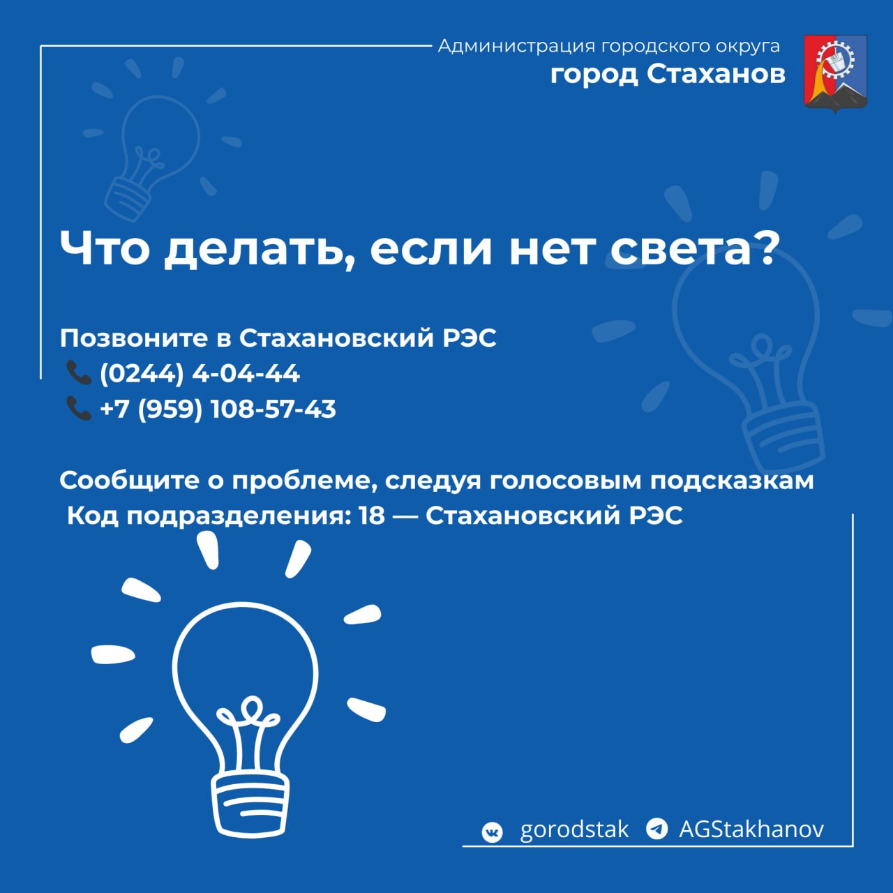 Уважаемые жители! Если вы столкнулись с перебоями или отсутствием электроэнергии, заявки необходимо оставлять напрямую в Стахановский РЭС ГУП ЛНР «Луганскэнерго».