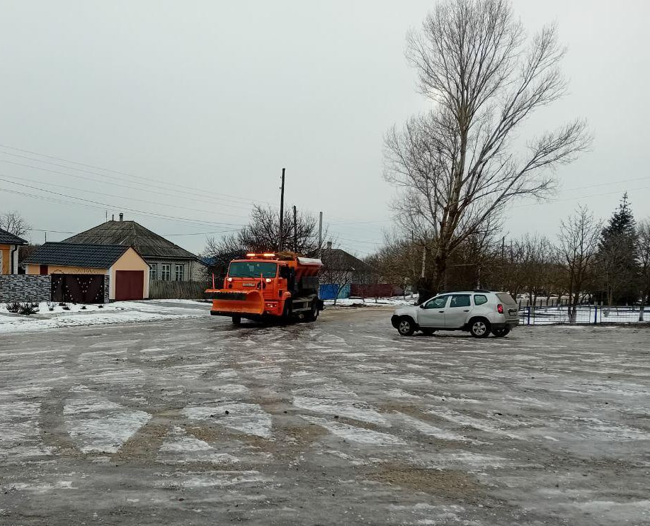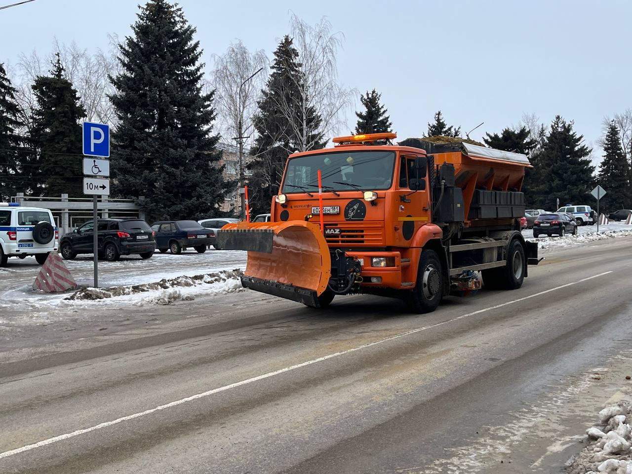 Сейчас КДМ чистит улицы от снега и посыпает дорожное полотно песко-соляной смесью.