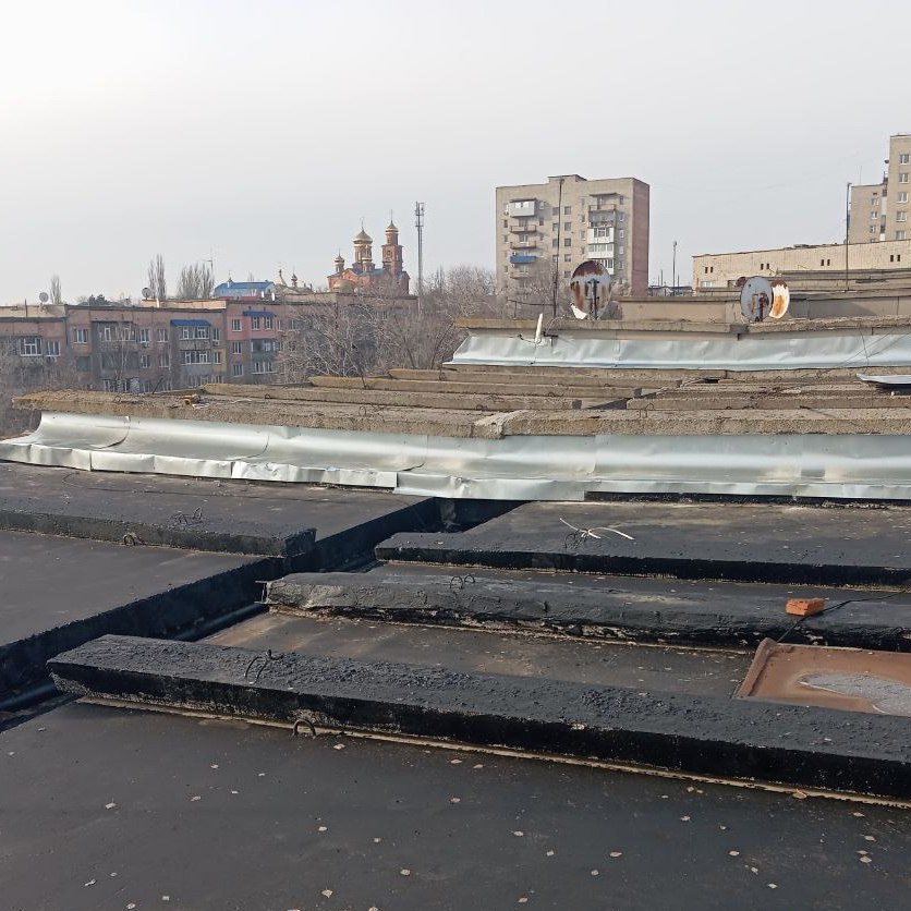 Антрацитовский филиал ЕУК выполняет работы по устройству примыканий из стали на крышах многоквартирных домов.