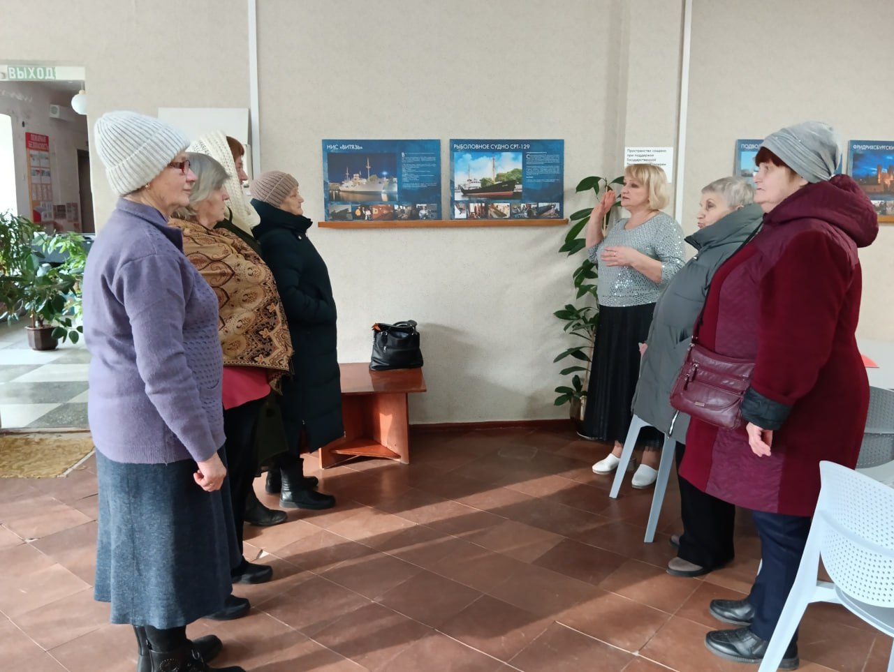 Директор Кировского историко-художественного музея провела экскурсию по виртуальной выставке, составленной из планшетных фотографий. Участники узнали о том, что Калининградский Музей Мирового океана — первый маринистический комплексный музей в России был основан в 1990 году.