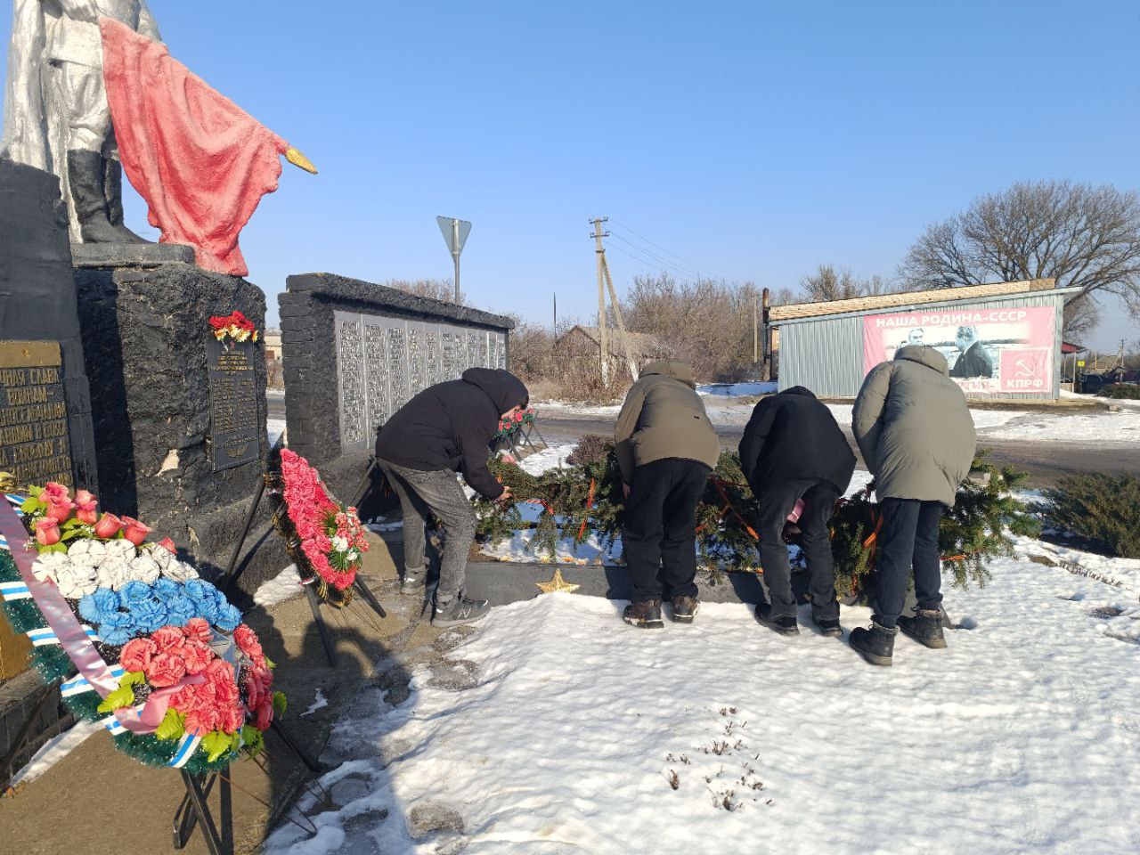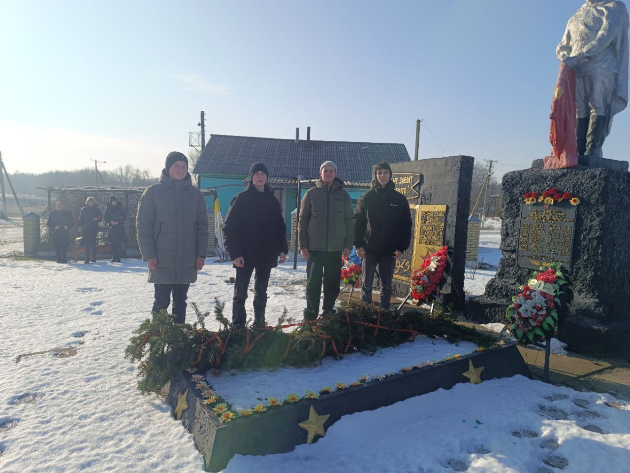 Центральным моментом мероприятия стало возложение, учащимися Морозовской СШ, венков и хвойной гирлянды к памятнику односельчанам – героям Великой Отечественной войны, павшим в боях за освобождение села Морозовка.