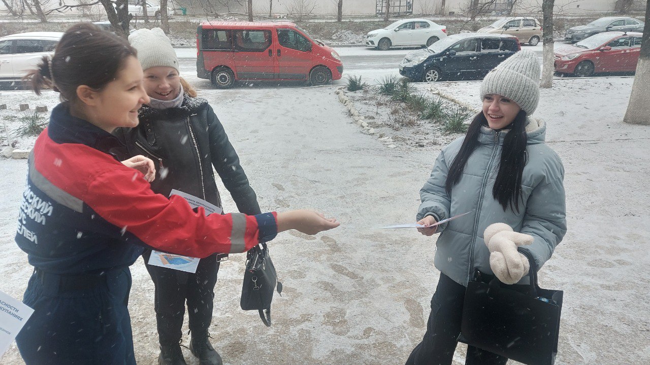 Ребята раздали памятки от МЧС и напомнили сверстникам о главных правилах безопасности на льду, особенно в связи с традиционными крещенскими купаниями: