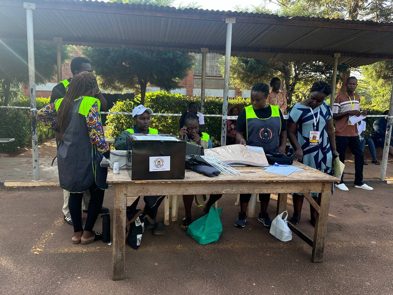 С учетом местного климата, большинство избирательных участков на выборах в Уганде организованы под открытым небом.