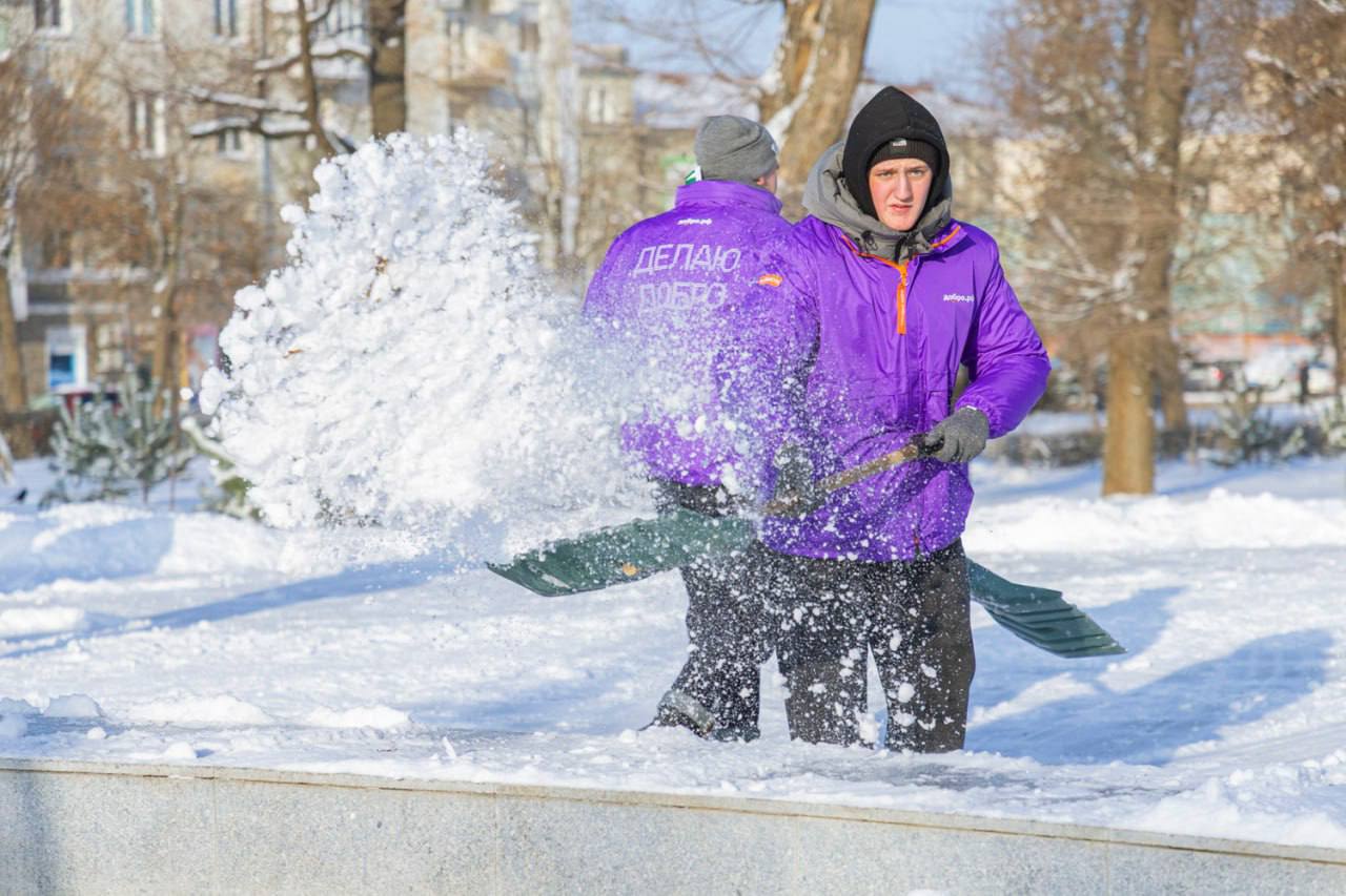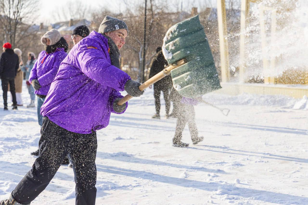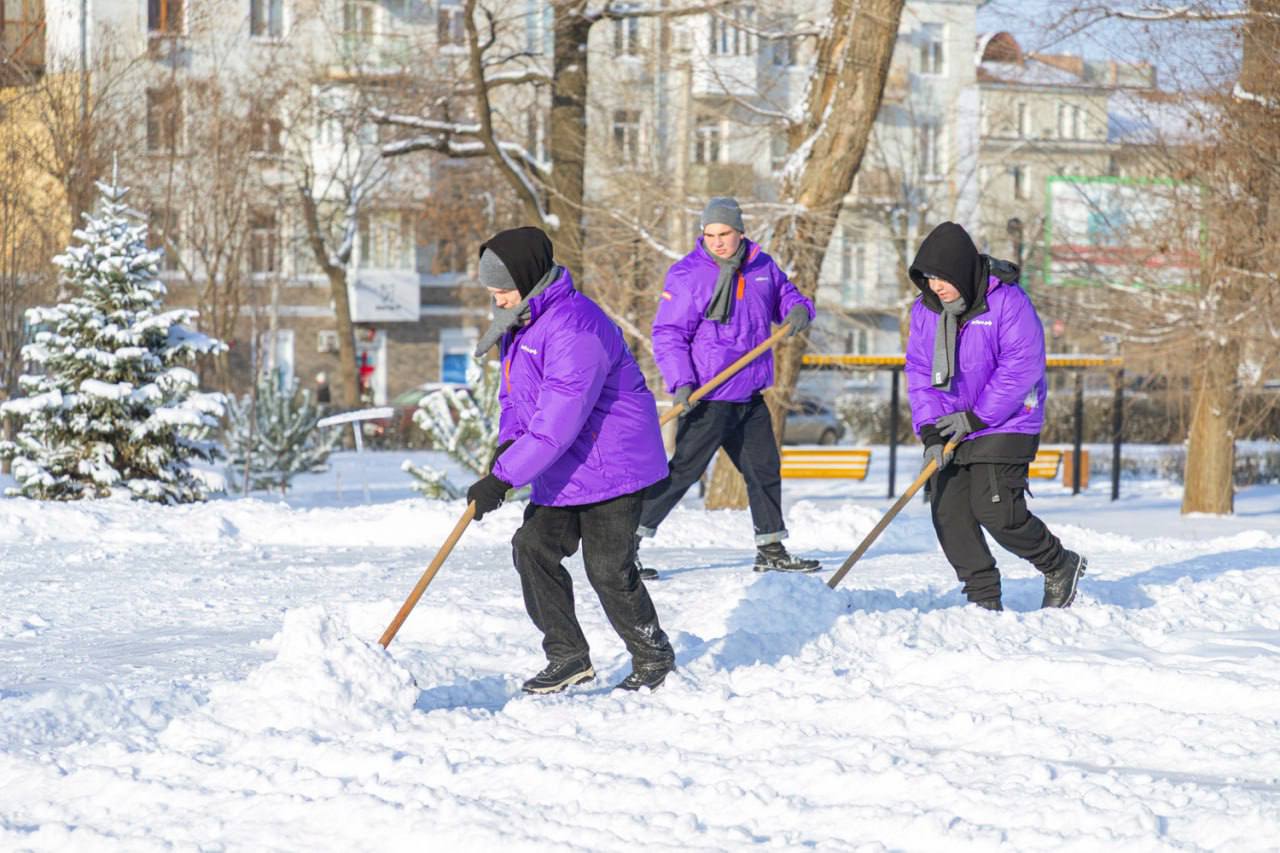 Луганская молодежь помогает коммунальщикам столицы с расчисткой снега в городских парках и скверах