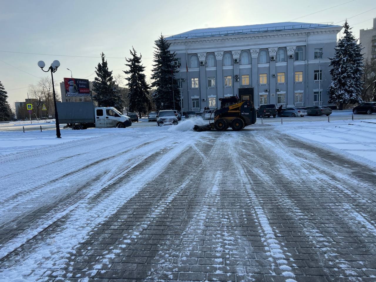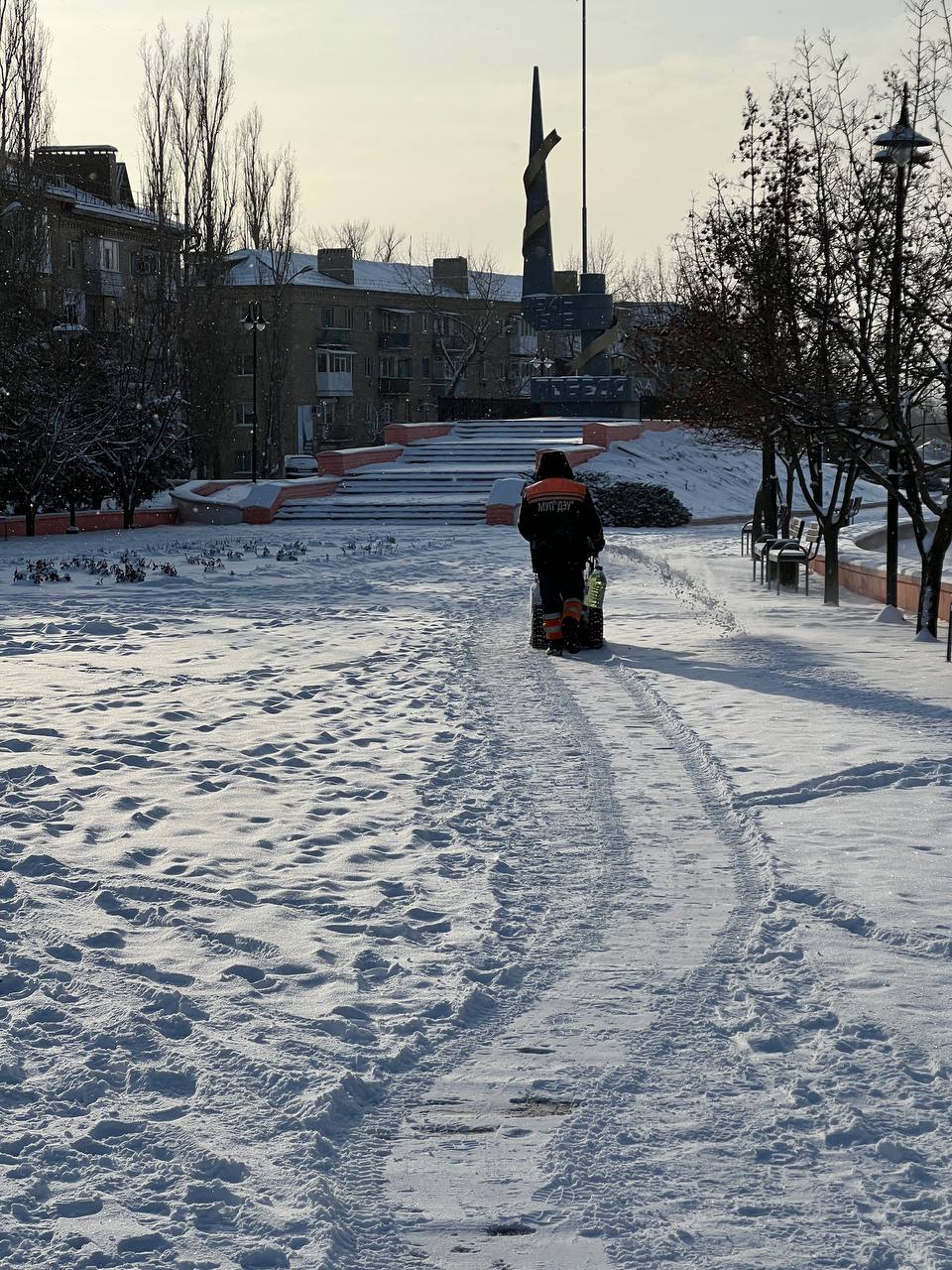Для обеспечения безопасности и комфортного передвижения жителей Краснодона в зимний период, муниципальное унитарное предприятие «Дорожно-эксплуатационное управление» провело масштабные работы по очистке общественных пространств и памятных мест от снега.