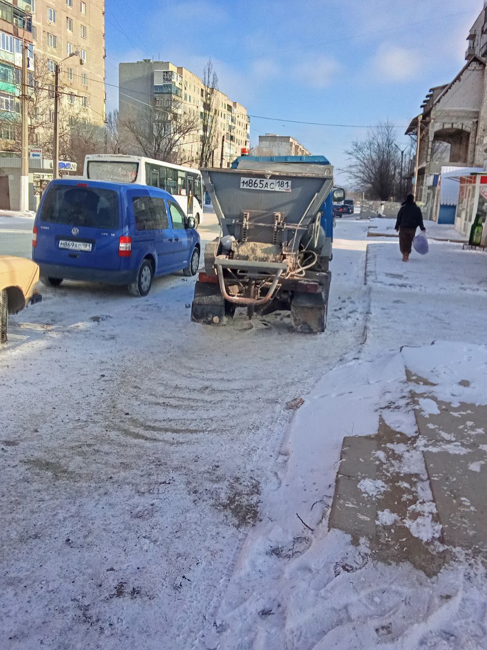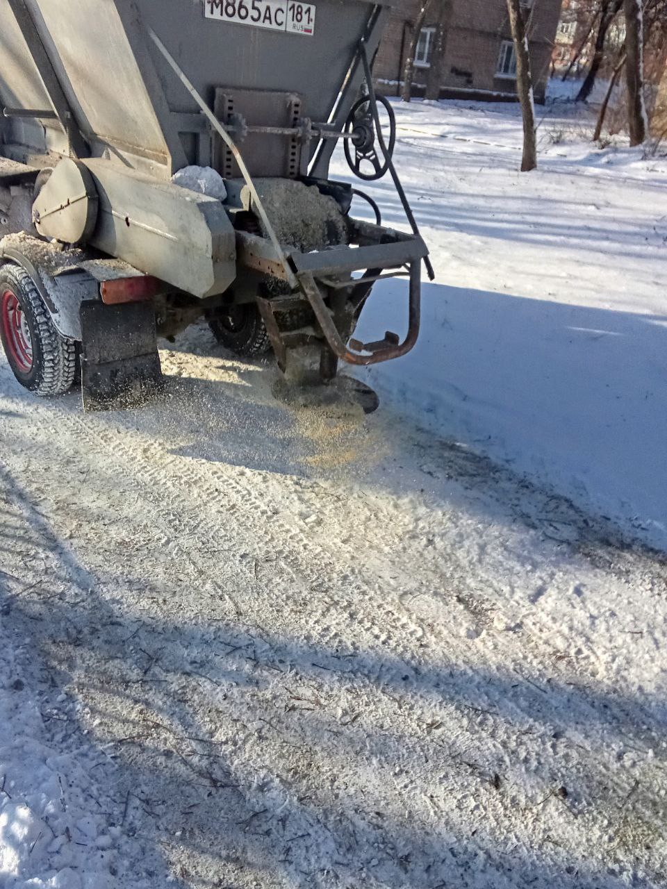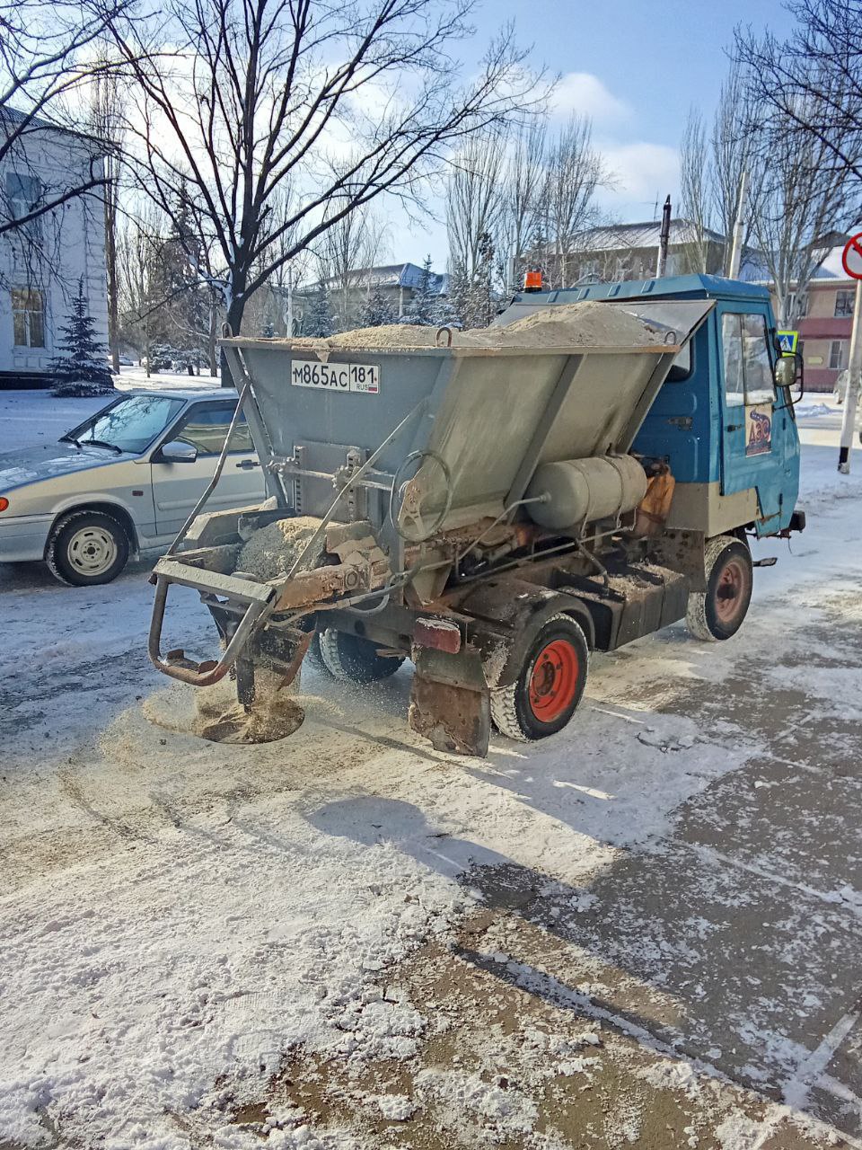 Наша дорожная служба работает в усиленном режиме, чтобы пешеходные тротуары были безопасными. Посмотрите, как старается этот небольшой, но очень усердный мультикар! Он тщательно посыпает дорожки противогололедной смесью, чтобы каждый ваш шаг был уверенным.
