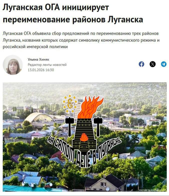 Украинские власти призывают в комментариях в Facebook предлагать варианты для переименования районов столицы ЛНР.